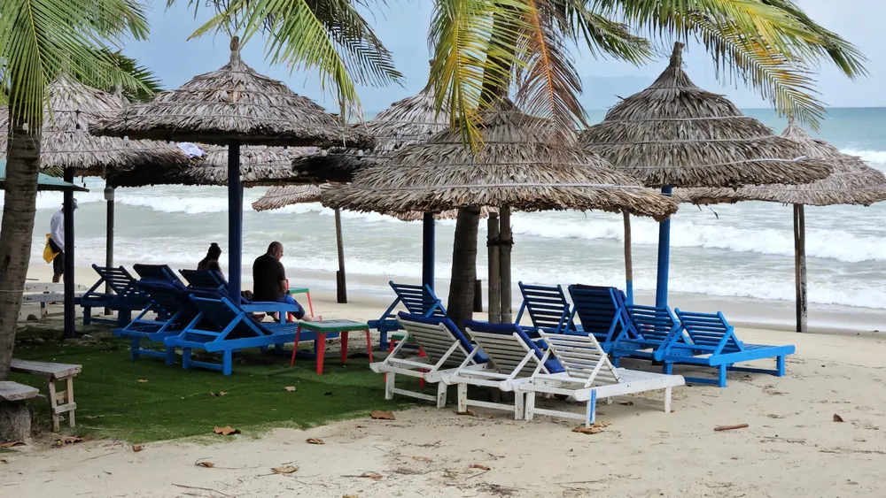 Hàng quán dưới bờ biển Mỹ Khê vẫn mở bán. Ảnh: TẤN VIỆT