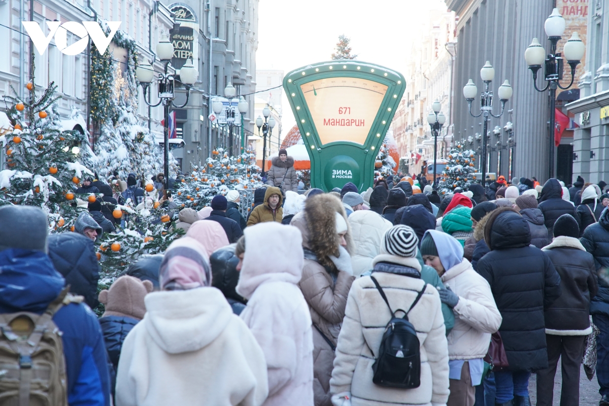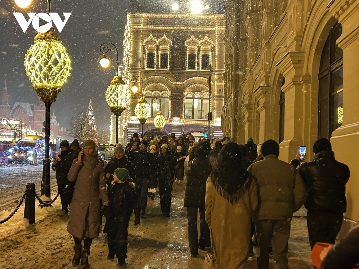 Người dân và du khách tập trung tại Quảng trường Đỏ chờ thời khắc giao thừa.