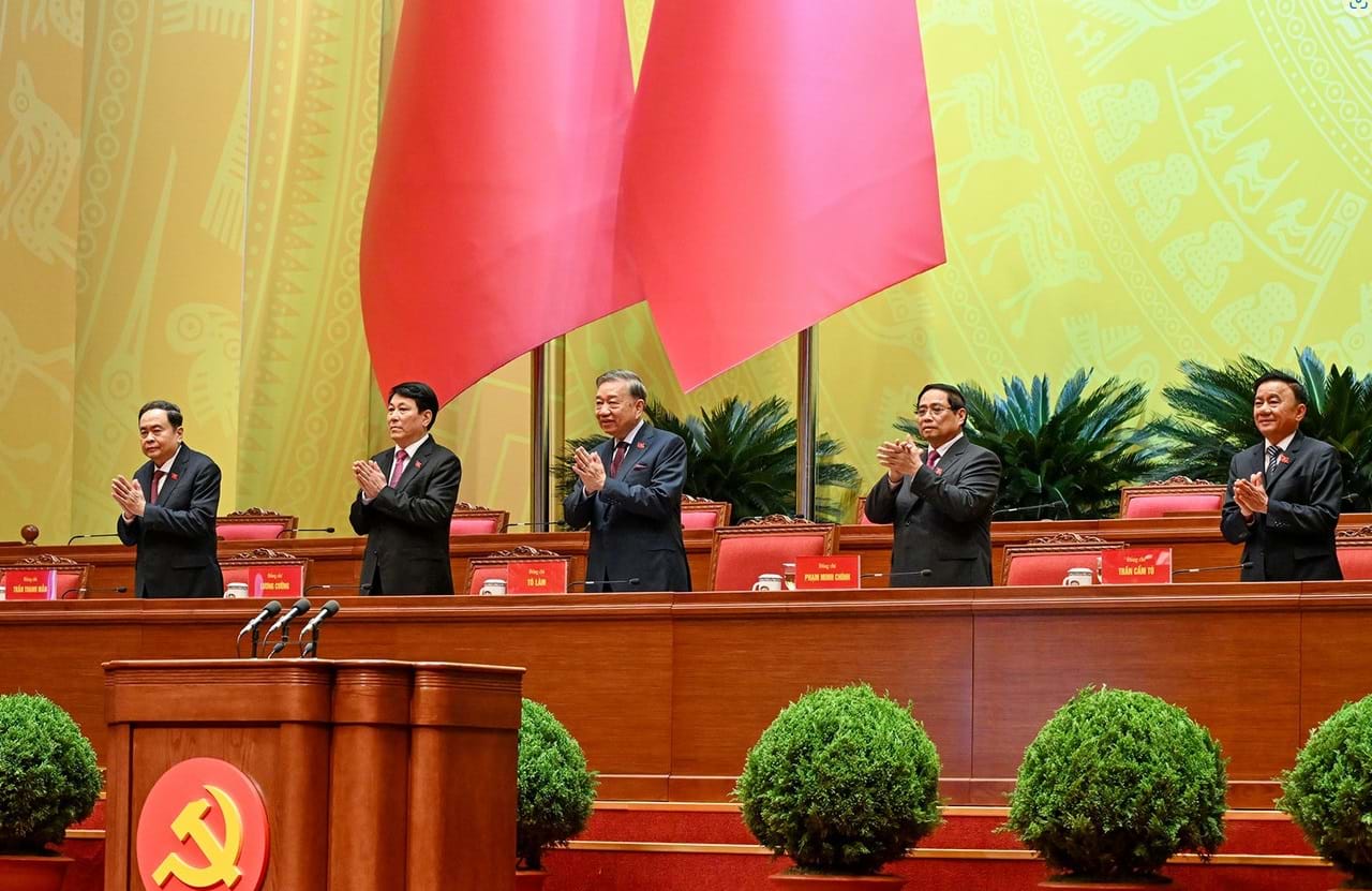 Đại hội dành một phút mặc niệm đồng chí cố Tổng Bí thư Nguyễn Phú Trọng và các đồng chí Ủy viên Trung ương Đảng đã mất trong nhiệm kỳ Đại hội XIII.