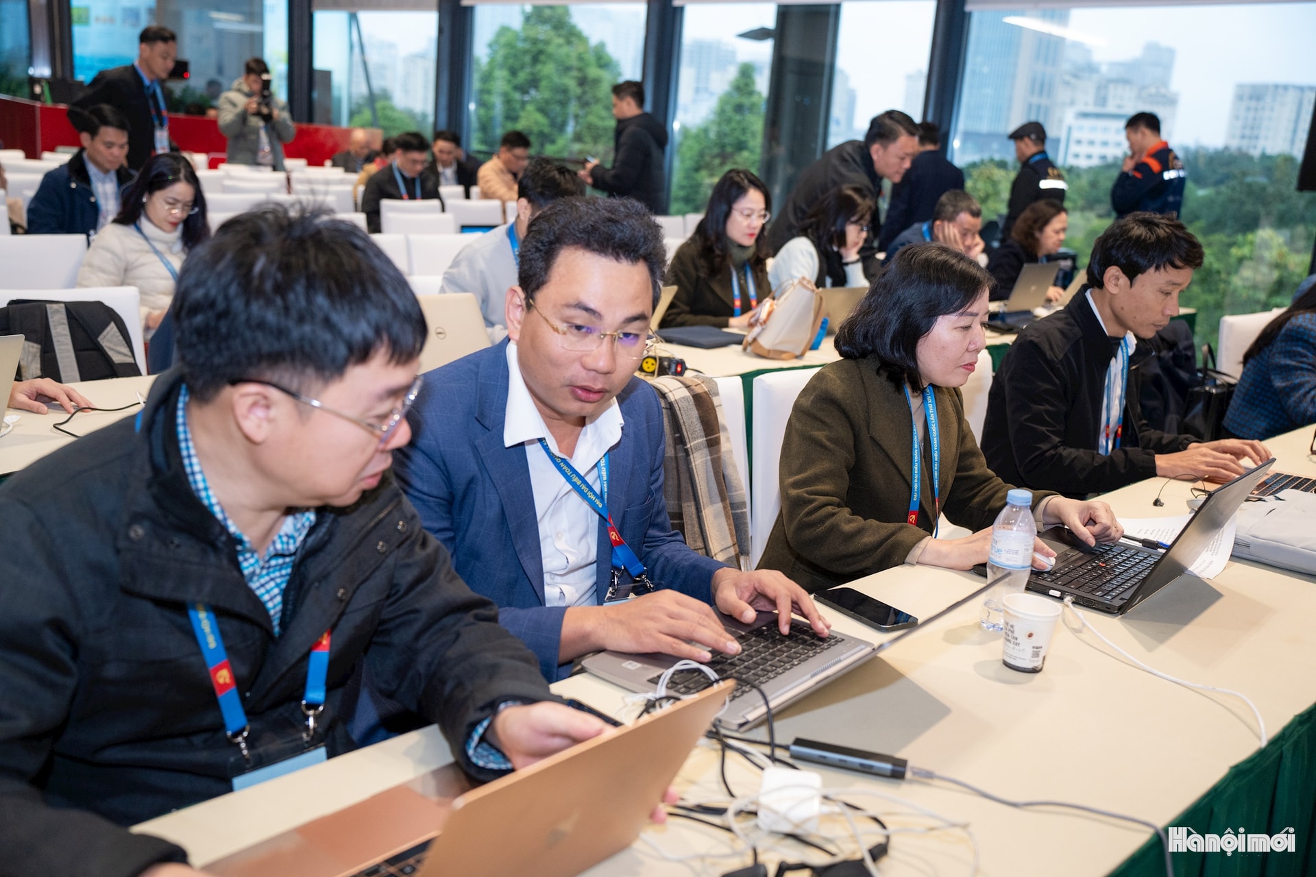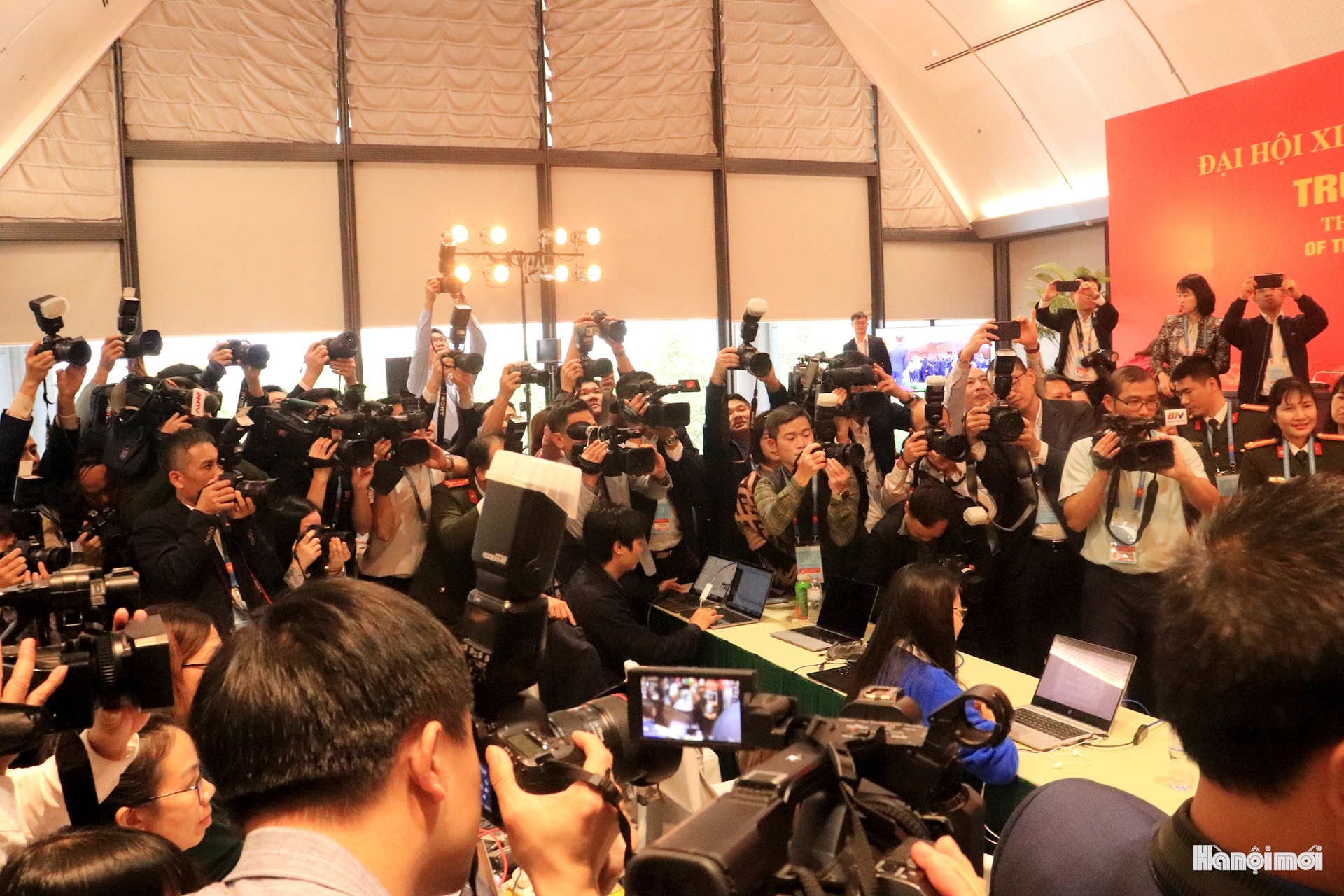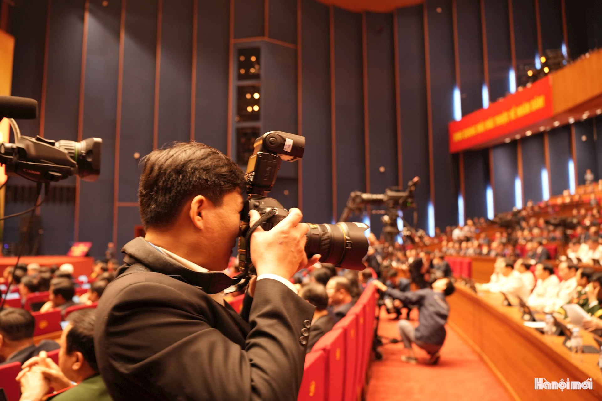 Các phóng viên Báo Hànôịmới tác nghiệp tại Đại hội.