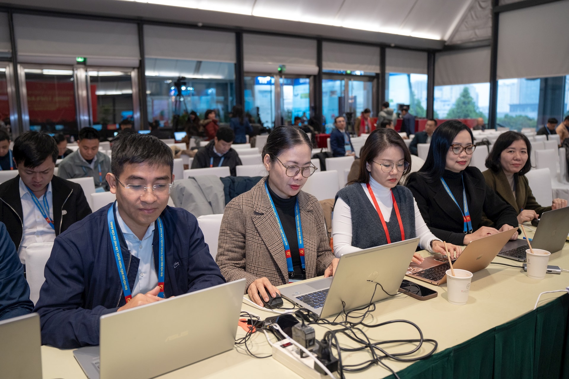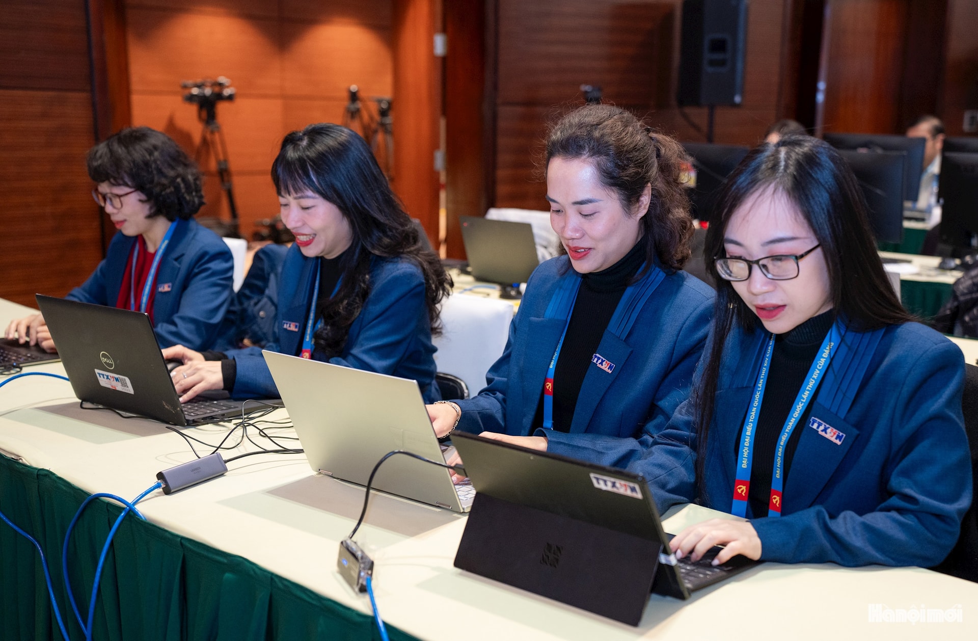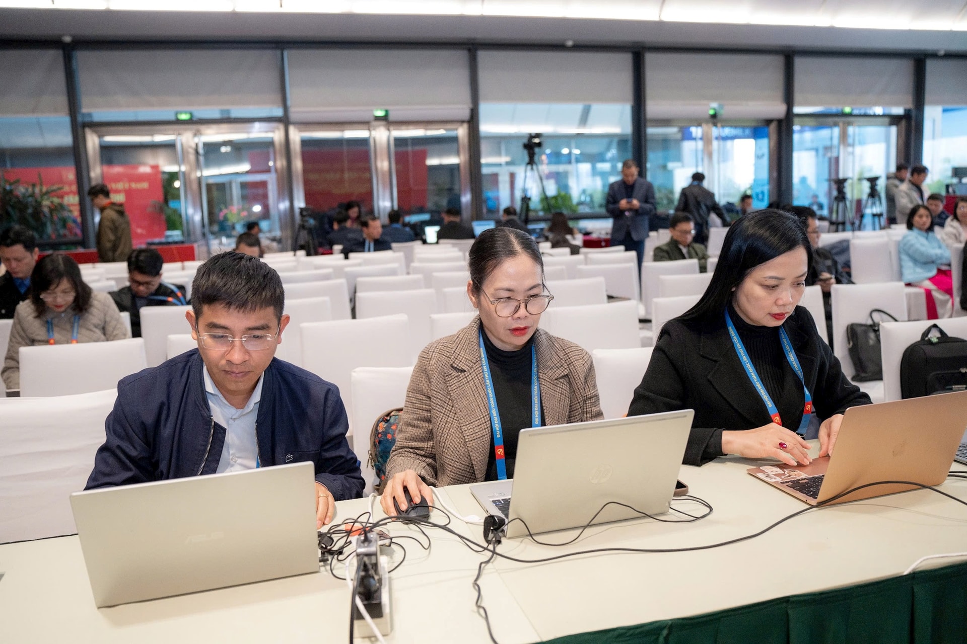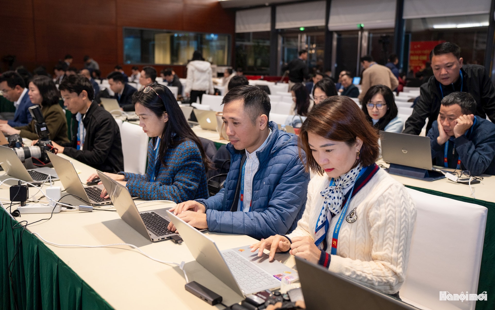 Phóng viên báo Hà Nội mới tác nghiệp tại Trung tâm Báo chí Đại hội.