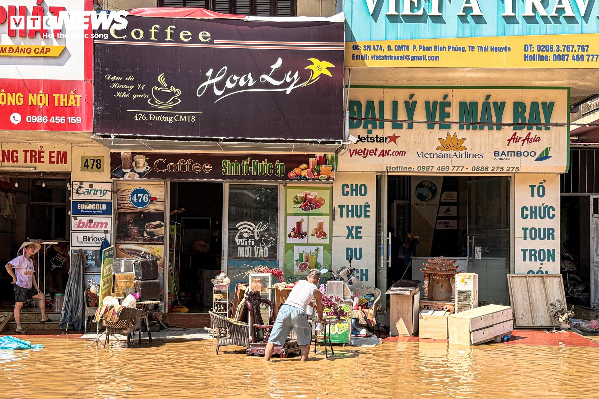 Sau nhiều ngày ngập sâu vì hoàn lưu bão số 11, trưa 9/10, nước lũ tại Thái Nguyên bắt đầu rút dần. Trên các tuyến phố trung tâm như Minh Cầu, Hoàng Văn Thụ, Lương Ngọc Quyến hay khu vực ngã ba Bắc Nam (phường Phan Đình Phùng), từng mảng bùn non loang lổ trên mặt đường, nhiều đoạn vẫn còn ngập cục bộ.