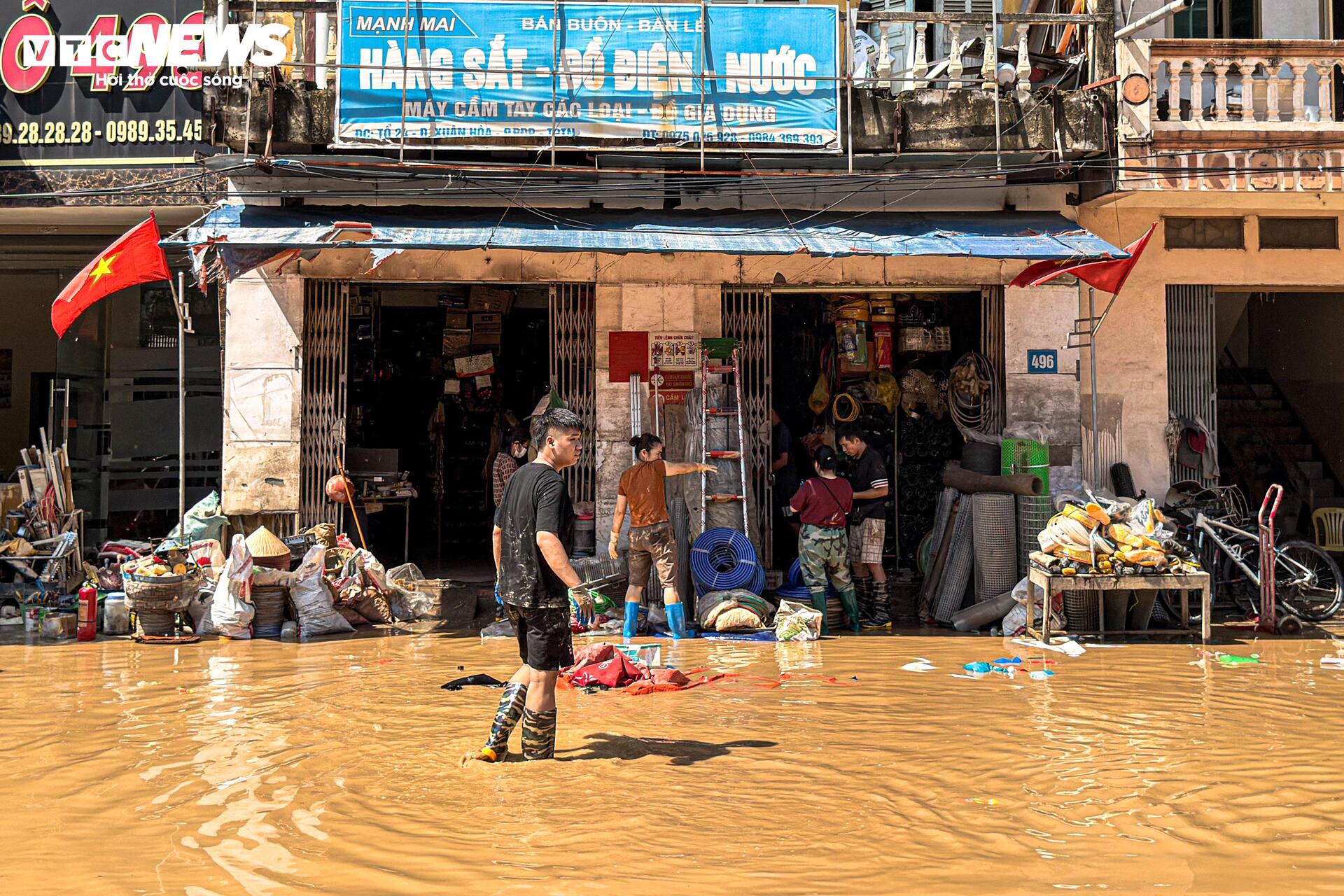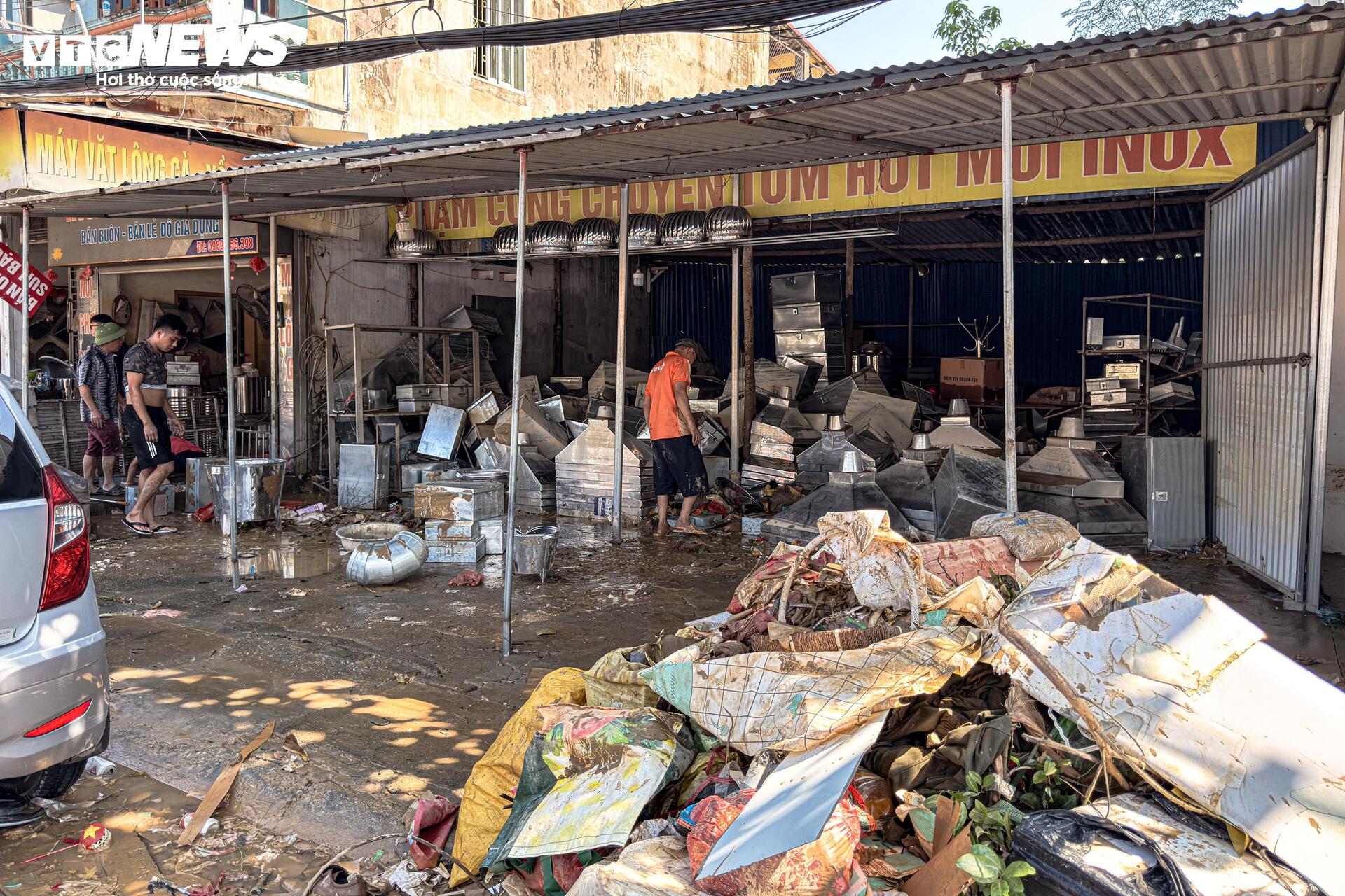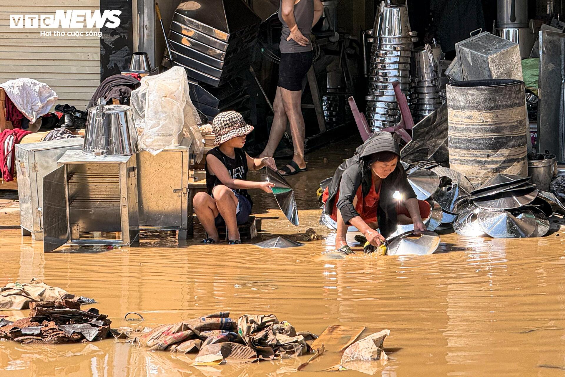 Phía trước cửa nhiều ngôi nhà, tủ, bàn ghế, hàng hóa ngổn ngang, phủ đầy bùn đất.