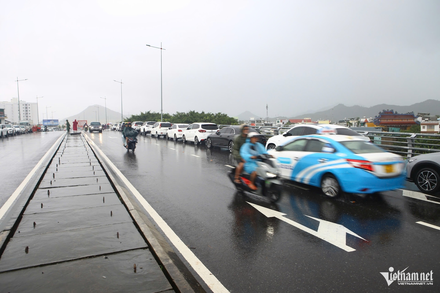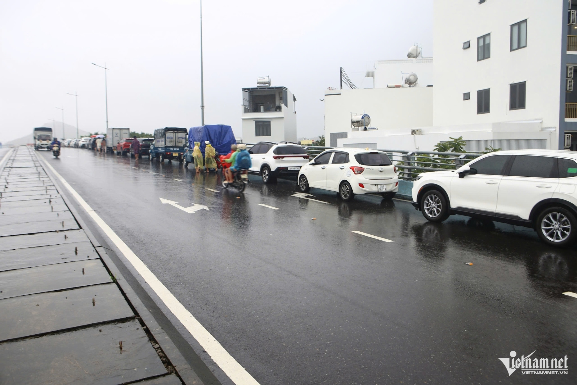 Hàng trăm ô tô xếp hàng dài, đỗ tạm trên cầu để tránh lũ cũng đứng trước nguy cơ bị ngập.