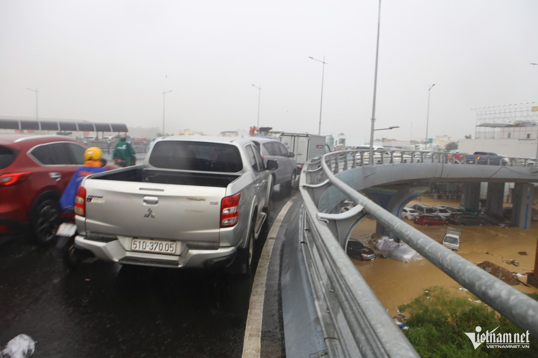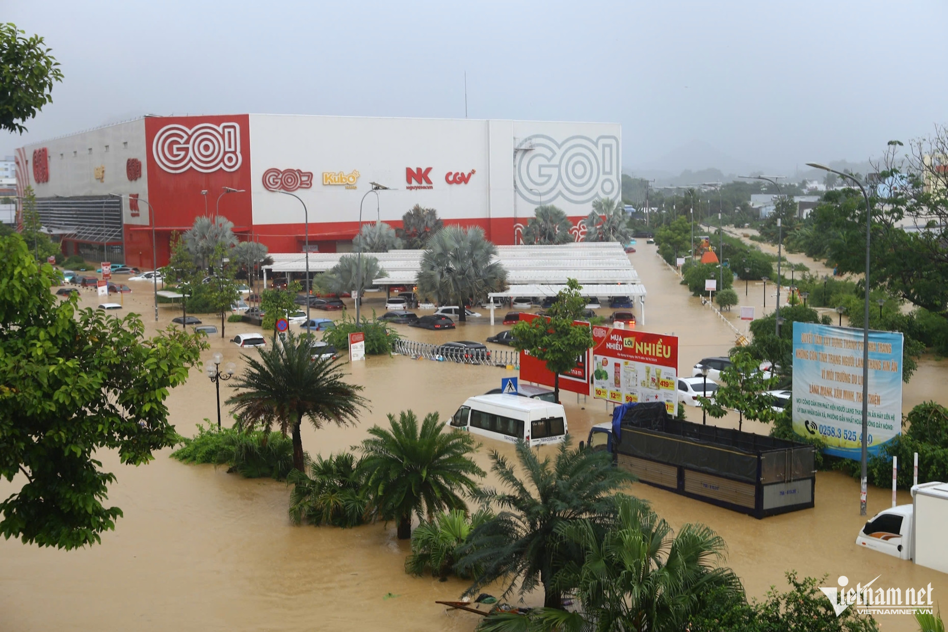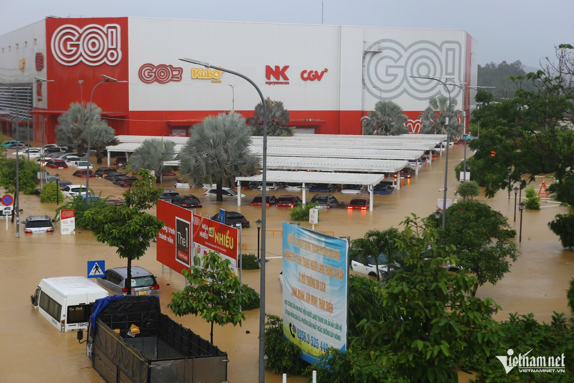Khu vực quanh siêu thị Go! (trước đây là Big C), từng là điểm giao thương sầm uất và nơi tập trung nhiều phương tiện sang trọng, nay trở thành tâm điểm ngập lụt nghiêm trọng. Hàng trăm ô tô bị nước nhấn chìm, tạo nên cảnh tượng hỗn loạn giữa những cơn mưa lớn kéo dài.
