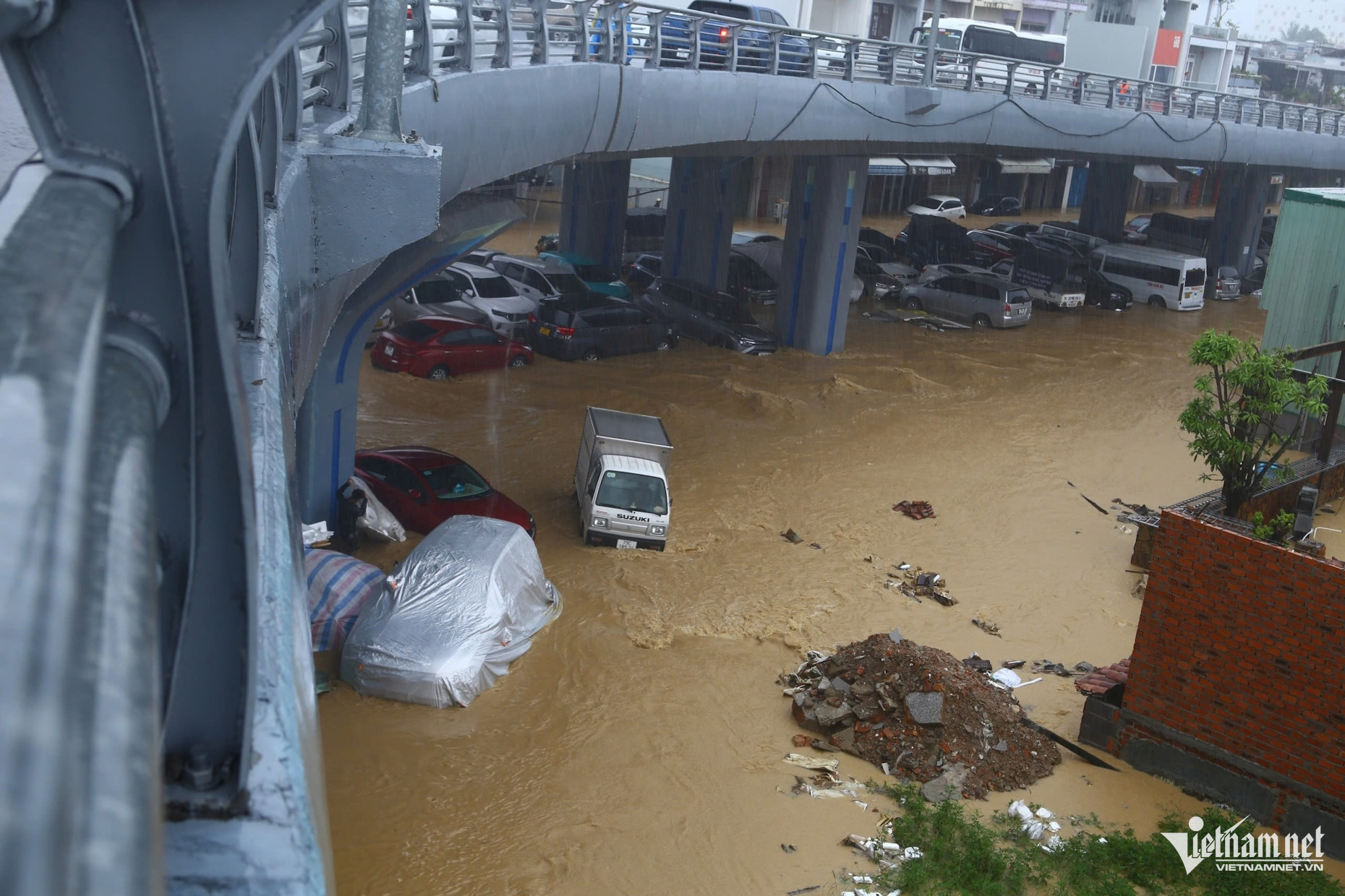 Khu vực trũng như khu đô thị Vĩnh Điềm Trung (phường Tây Nha Trang), lũ lớn đột ngột khiến loạt ô tô bị nước nhấn chìm.