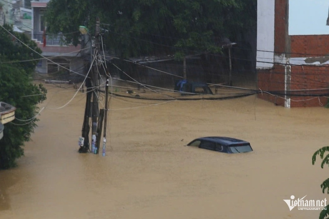 Các trục đường chính như đường 23/10, cùng các khu dân cư ven sông đã bị chia cắt, tê liệt hoàn toàn, với mực nước được ghi nhận từ 1-2m.