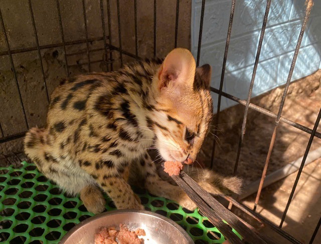 Một con mèo rừng sau những ngày đầu ủ rũ, lười ăn đã hăng hái ăn trở lại món ưa thích.