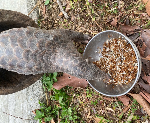 Tê tê – loài động vật quý hiếm nhóm IB – thích thú ăn loại trứng kiến vàng ở khu cứu hộ.