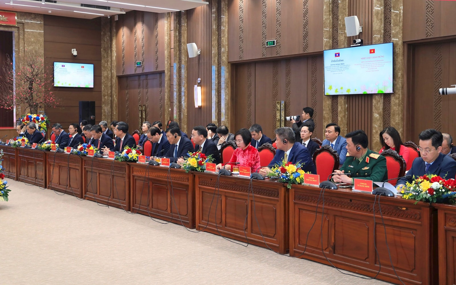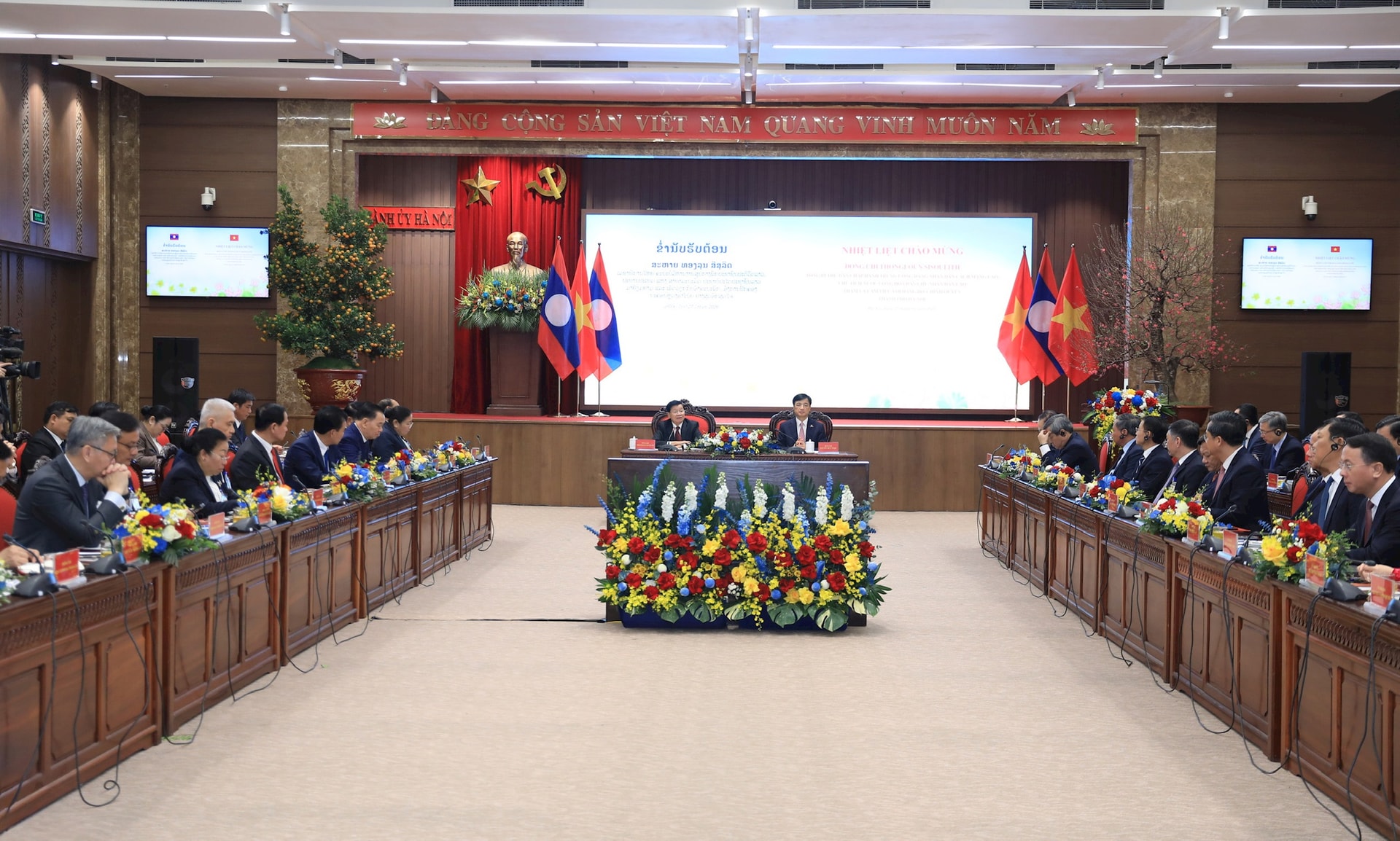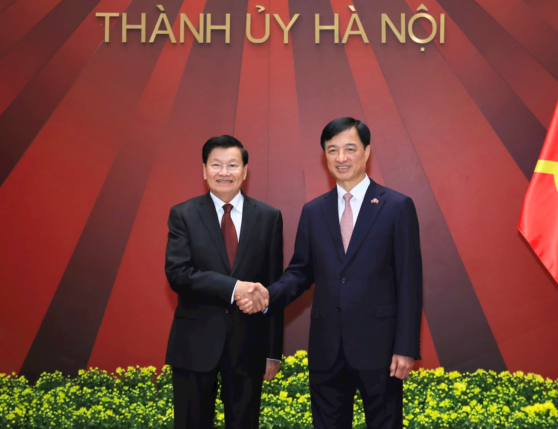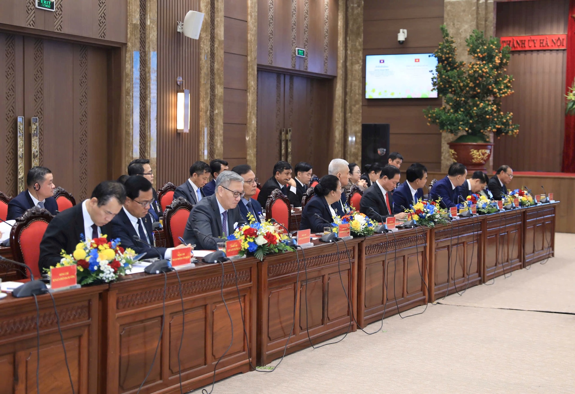 Chuyến thăm và làm việc của Đoàn đại biểu cấp cao Đảng, Nhà nước Lào tại Thành ủy Hà Nội đã thành công tốt đẹp. Ảnh: Quang Thái