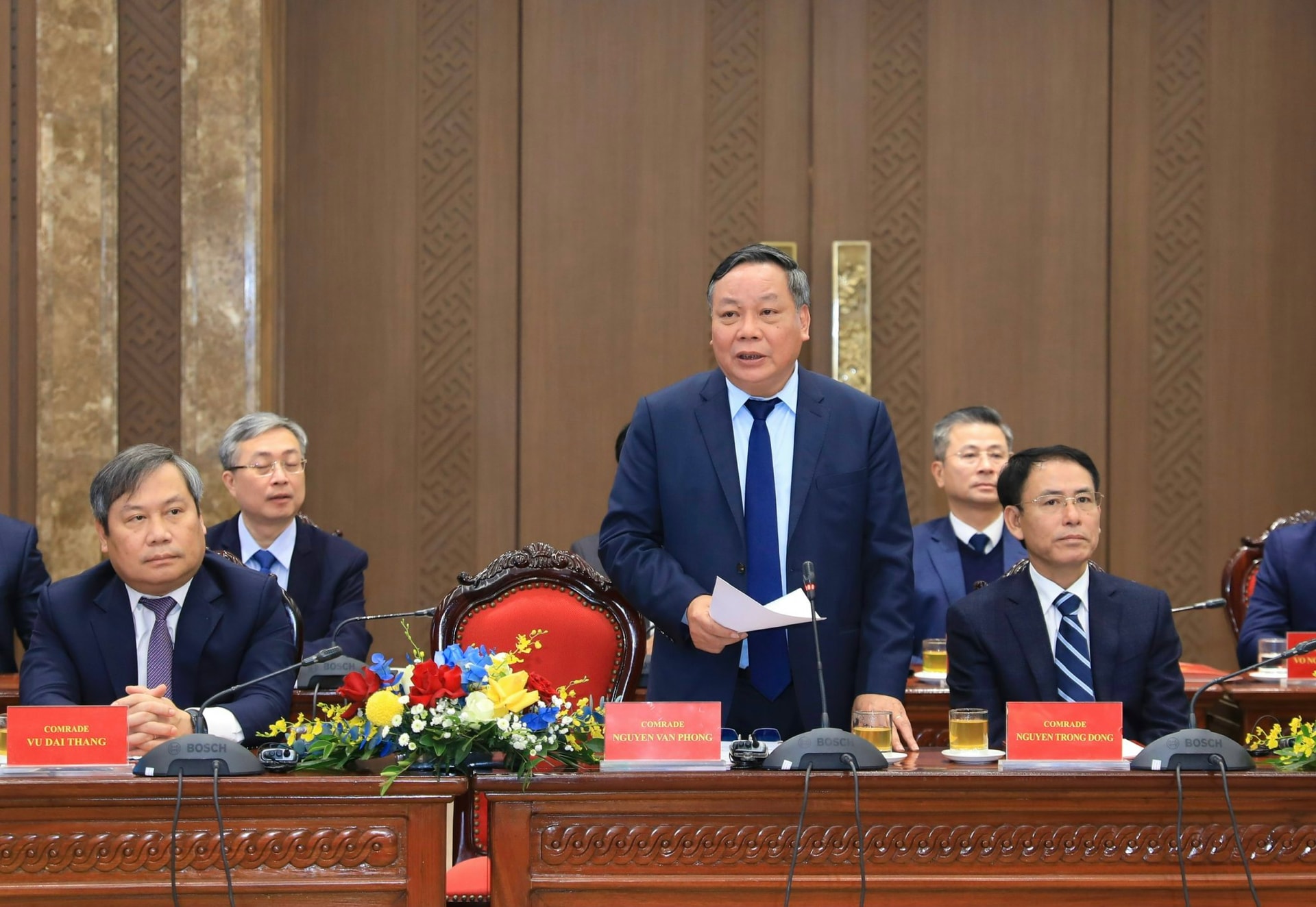 Phó Bí thư Thường trực Thành ủy Hà Nội Nguyễn Văn Phong trình bày định hướng tổ chức triển khai Nghị quyết Đại hội XIV của Đảng trên địa bàn thành phố Hà Nội. Ảnh: Quang Thái