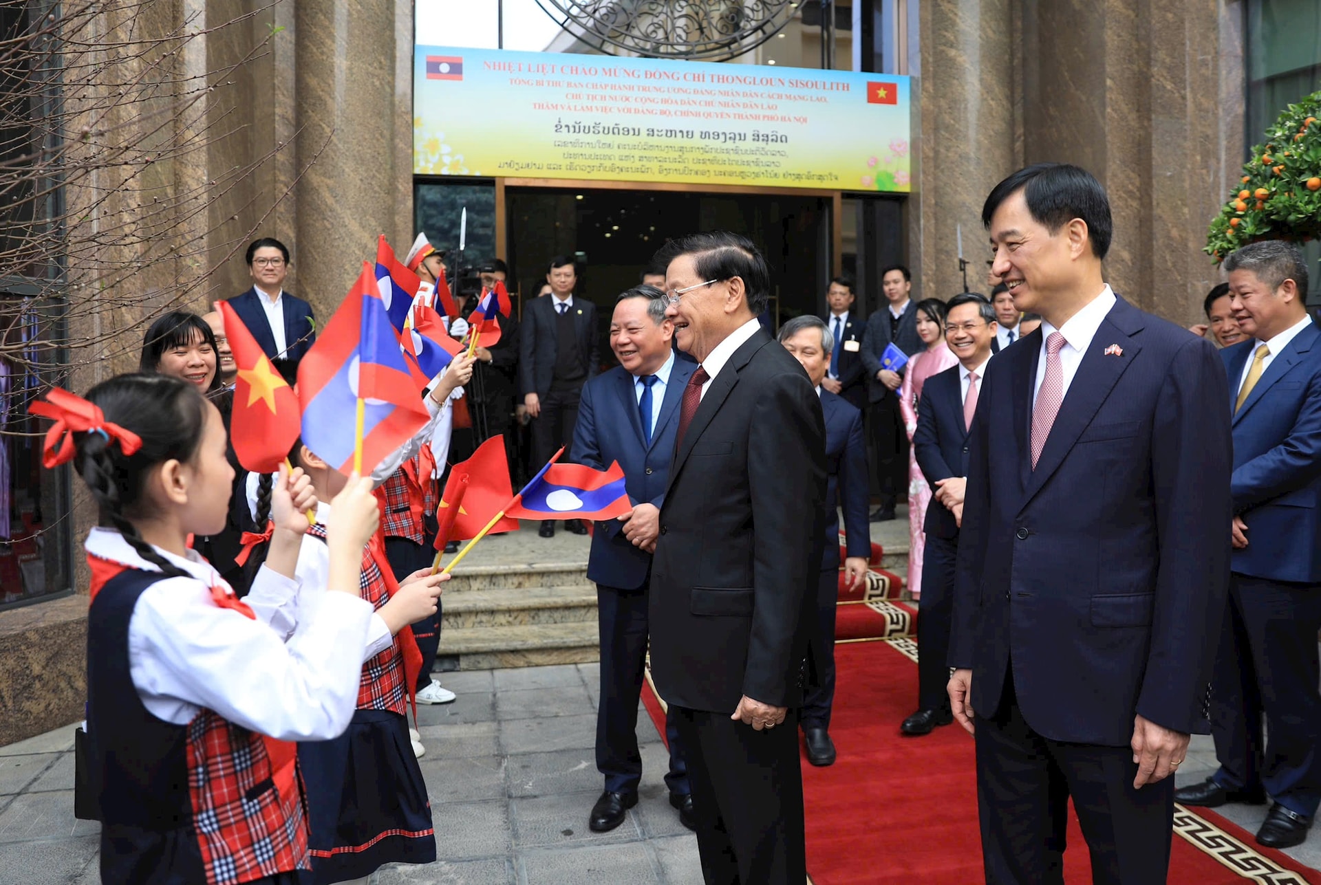 Tổng Bí thư, Chủ tịch nước Lào Thongloun Sisoulith gặp gỡ lãnh đạo thành phố Hà Nội. Ảnh: Quang Thái