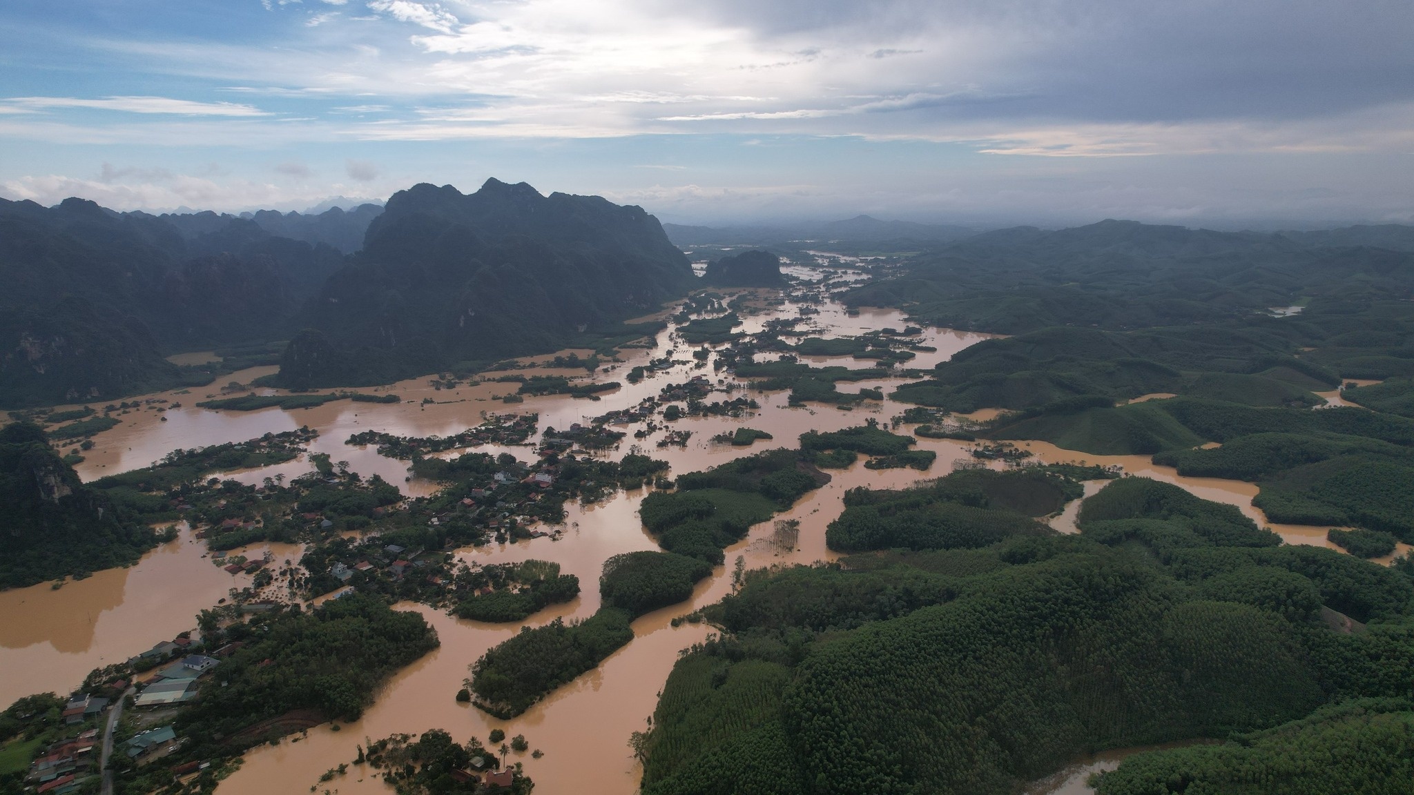 Đến ngày 8/10, 4 chuyến trực thăng của Trung đoàn 916, Quân chủng Phòng không Không quân (Hà Nội) mang theo 9 tấn hàng cứu trợ đến các xã Hữu Lũng, Tuấn Sơn, Yên Bình và Vân Nham. Người dân vùng bị cô lập mừng rỡ khi nhận được gói hàng trên tay. Trung tâm Dự báo Khí tượng Thủy văn quốc gia dự báo ngập lụt tại Lạng Sơn sẽ tiếp diễn trong 1-2 ngày tới. Trong đó, lũ trên sông Thương tại Cầu Sơn có khả năng đạt đỉnh, trên báo động 3 khoảng 2,45 m. Ảnh: Phạm Trường Giang.