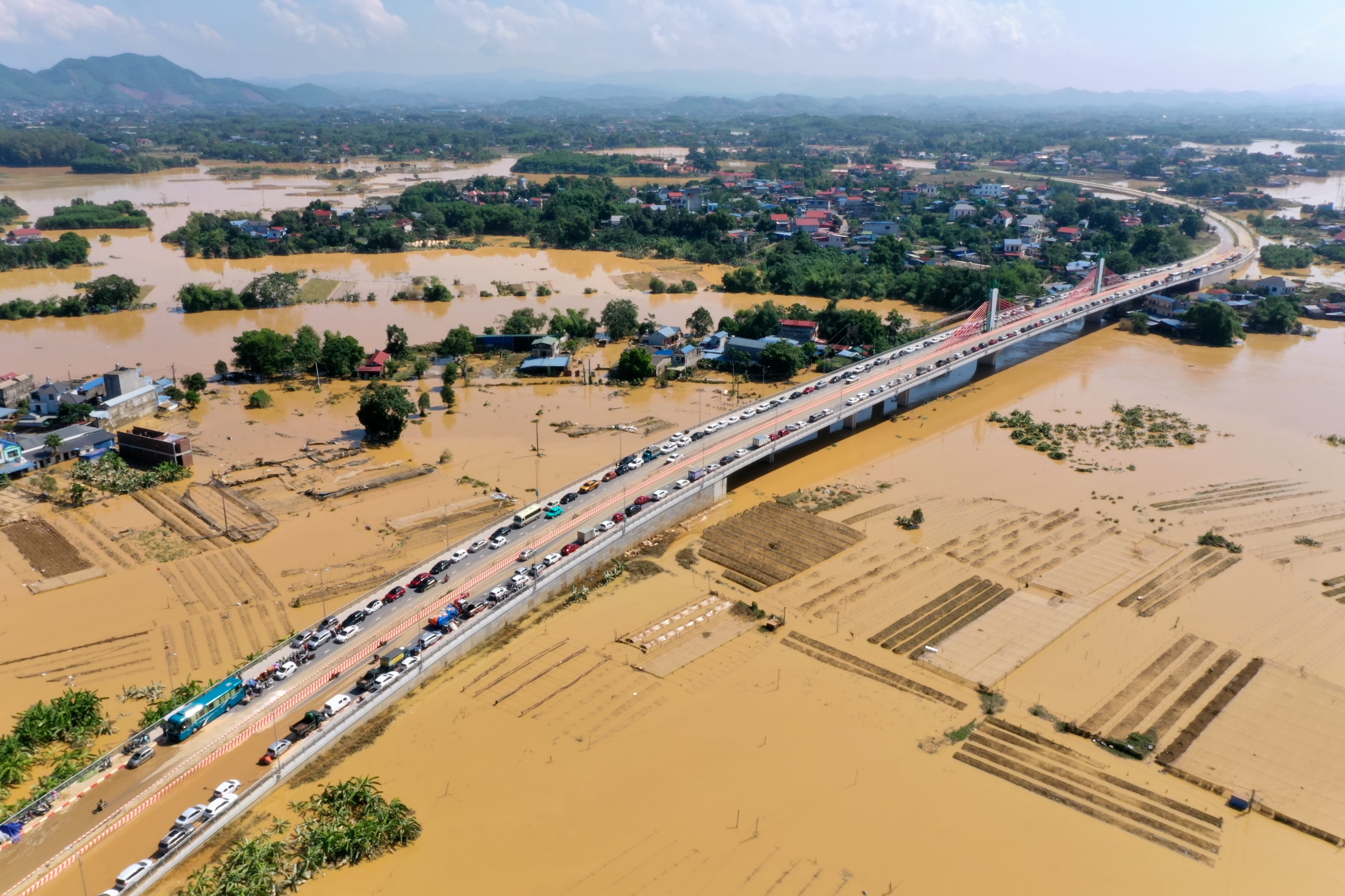 Mưa lớn kéo dài do ảnh hưởng bão Matmo khiến nhiều tỉnh miền núi và trung du Bắc Bộ rơi vào tình trạng ngập sâu từ ngày 7/10 đến 9/10, đặc biệt là Cao Bằng, Thái Nguyên, Lạng Sơn và Bắc Ninh. Nhiều khu dân cư bị cô lập, hàng nghìn hộ phải sơ tán khẩn cấp khi mực nước các sông vẫn ở mức báo động cao. Tại Thái Nguyên, đêm 8/10, nhiều khu vực trên địa bàn như Gia Sàng, Phan Đình Phùng, cầu Gia Bẩy, cầu Bến Oánh, cầu Huống, ngã 4 Minh Cầu, San Nền, hầm chui Bắc Nam, ngã 3 Mỏ Bạch, khu vực Quang Vinh, Trường Đại học Sư Phạm, ngã 4 hoàng gia... vẫn ngập sâu, mực nước có nơi lên đến 3 m. Ảnh: Khắc Duy Lê.