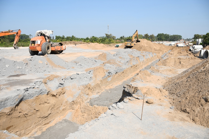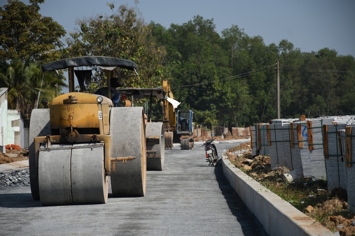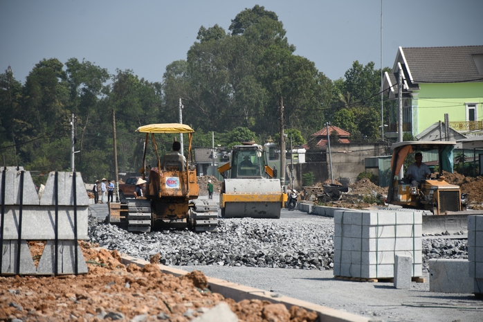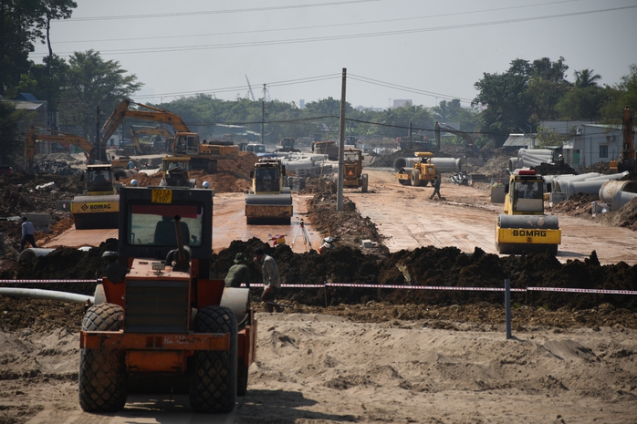 Nhiều máy móc được huy động để lu lèn nền đường, tiến tới thảm nhựa