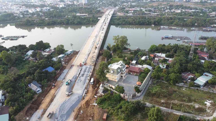 Cầu Thống Nhất (giáp đường Võ Thị Sáu) đang dần hoàn thiện, là hạng mục trọng điểm trên tuyến đường trục trung tâm TP Biên Hòa, bắc qua sông Cái, kết nối khu vực đô thị trung tâm với Cù lao Hiệp Hòa.