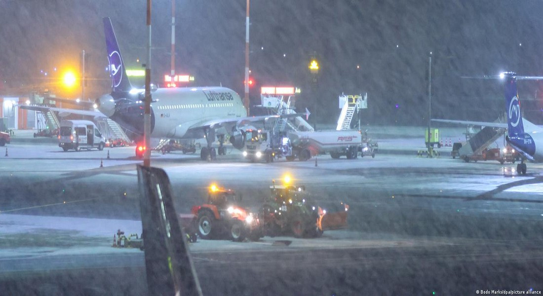 Tại sân bay Hamburg, hoạt động hàng không vẫn diễn ra bình thường bất chấp tuyết rơi dày. Tuy nhiên, sân bay Cologne/Bonn ở miền tây nước Đức đã phải tạm dừng các chuyến bay trong khoảng 1 giờ do điều kiện thời tiết bất lợi. Ảnh: DPA.