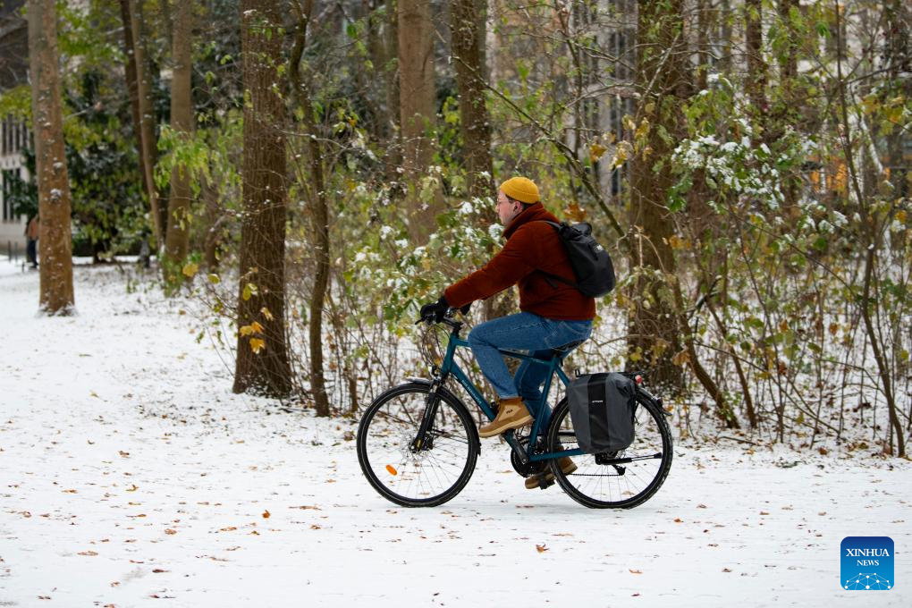 Tuyết phủ trắng mặt đất trong Công viên Tiergarten ở Berlin ngày 24/11. Ảnh: Xinhua News.