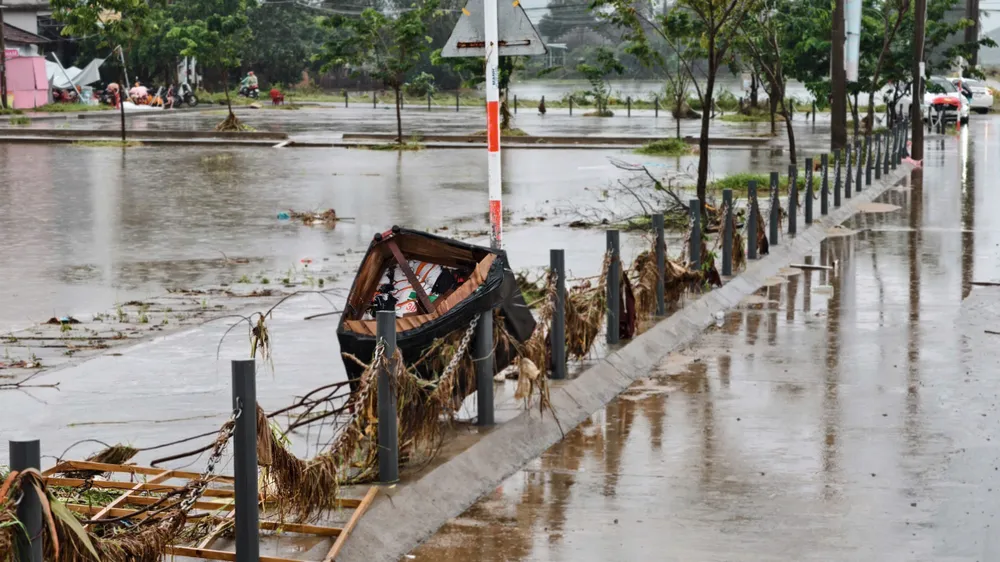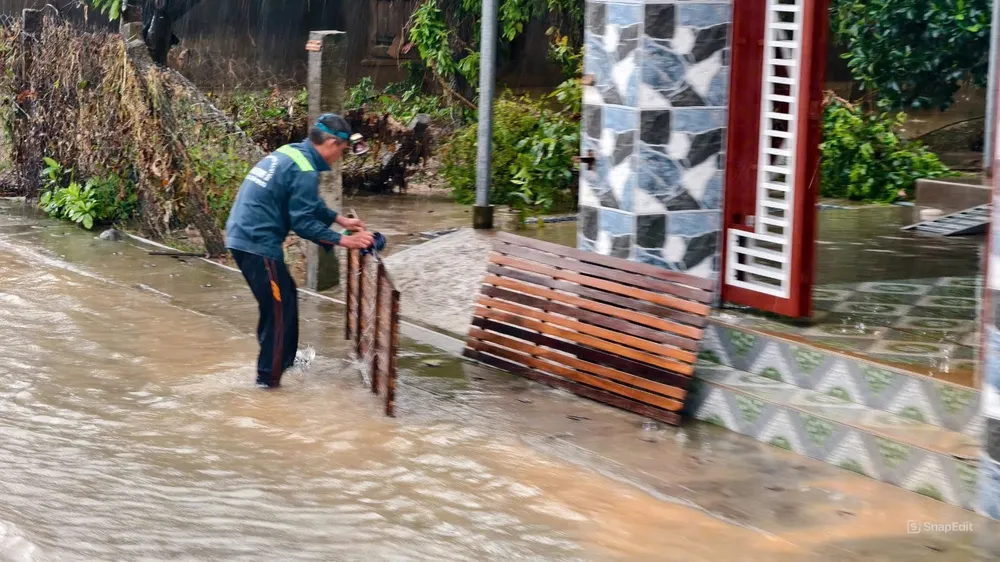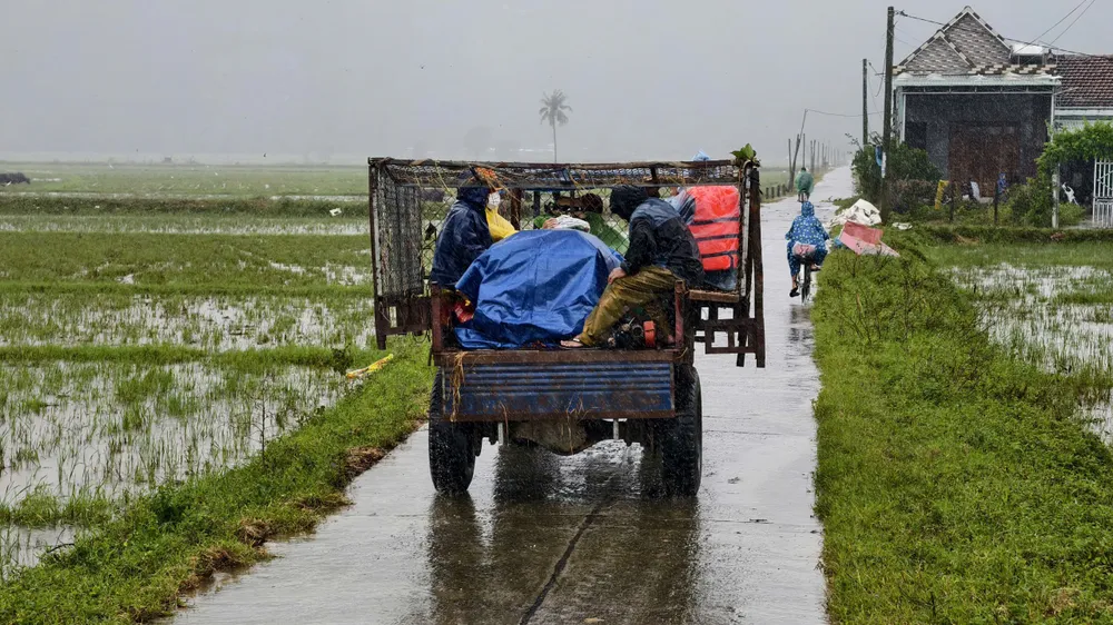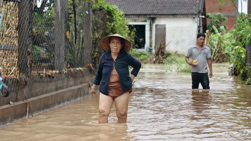 Trong các cánh đồng ở thôn Mỹ Trung, nước lũ cuốn nhiều tài sản của người dân trôi ra đồng. Nước rút, nhiều thứ như tủ lạnh, giường, ghế, bàn học nằm lại trên đường, không người thu dọn. Nhiều xe ô tô cũng nằm lại giữa đường vì nước lũ.