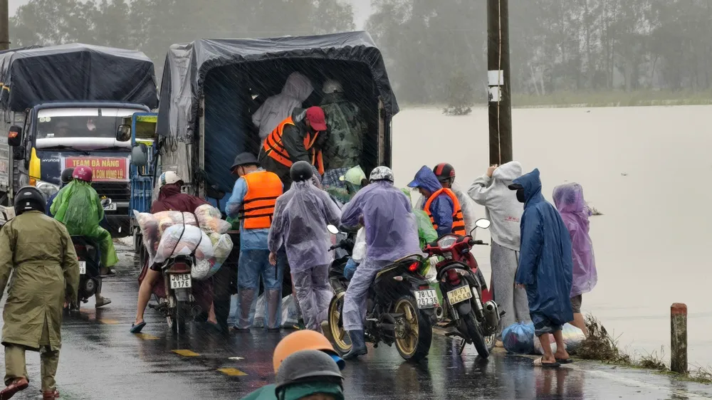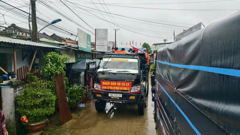 Đến hơn 14 giờ ngày 22-11, tại rốn lũ xã Hòa Thịnh, tỉnh Đắk Lắk, hàng trăm đoàn cứu trợ từ các nơi đổ về, mang theo nhiều thực phẩm, nhu yếu phẩm, áo phao… hỗ trợ bà con tại đây.