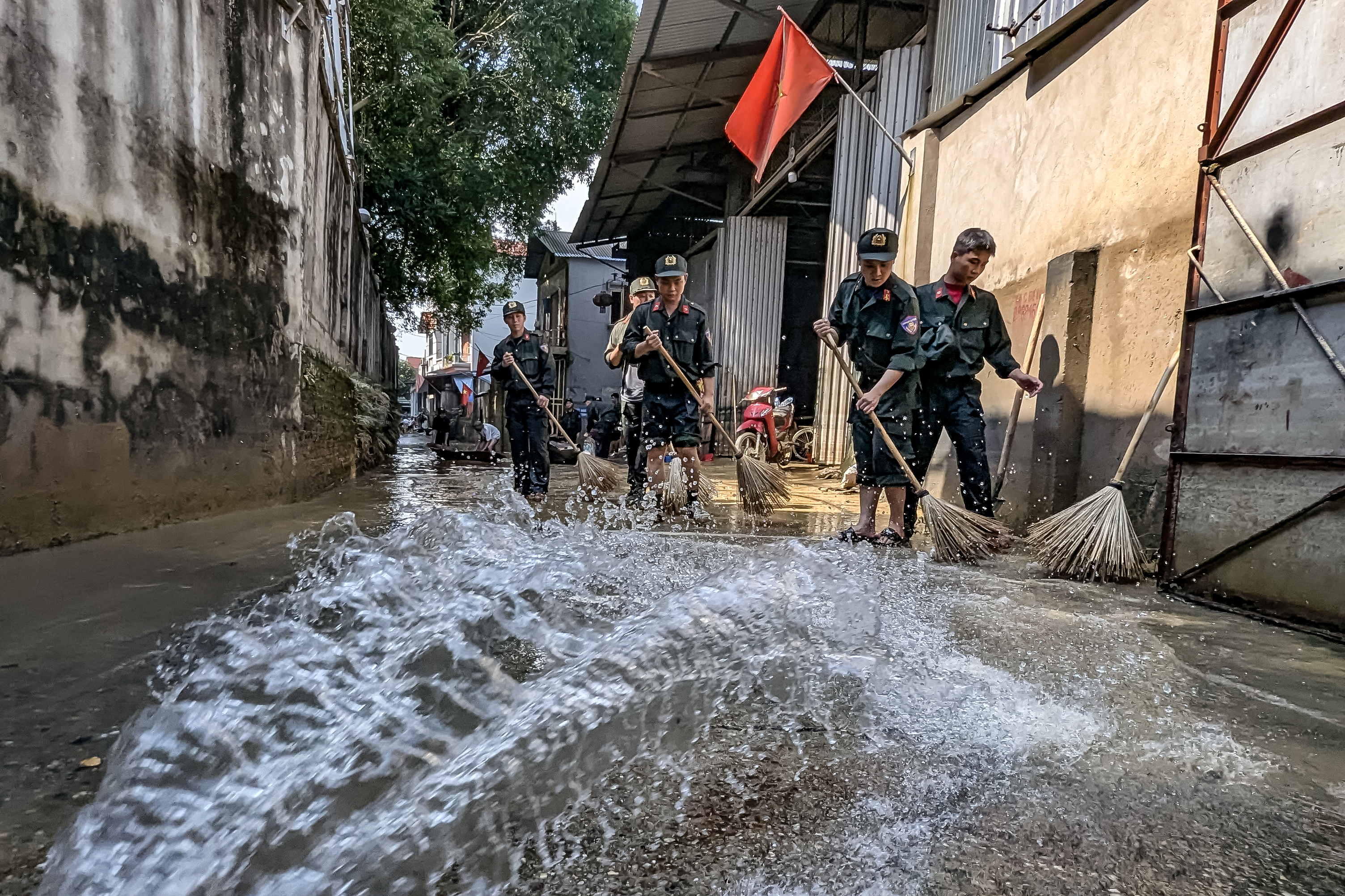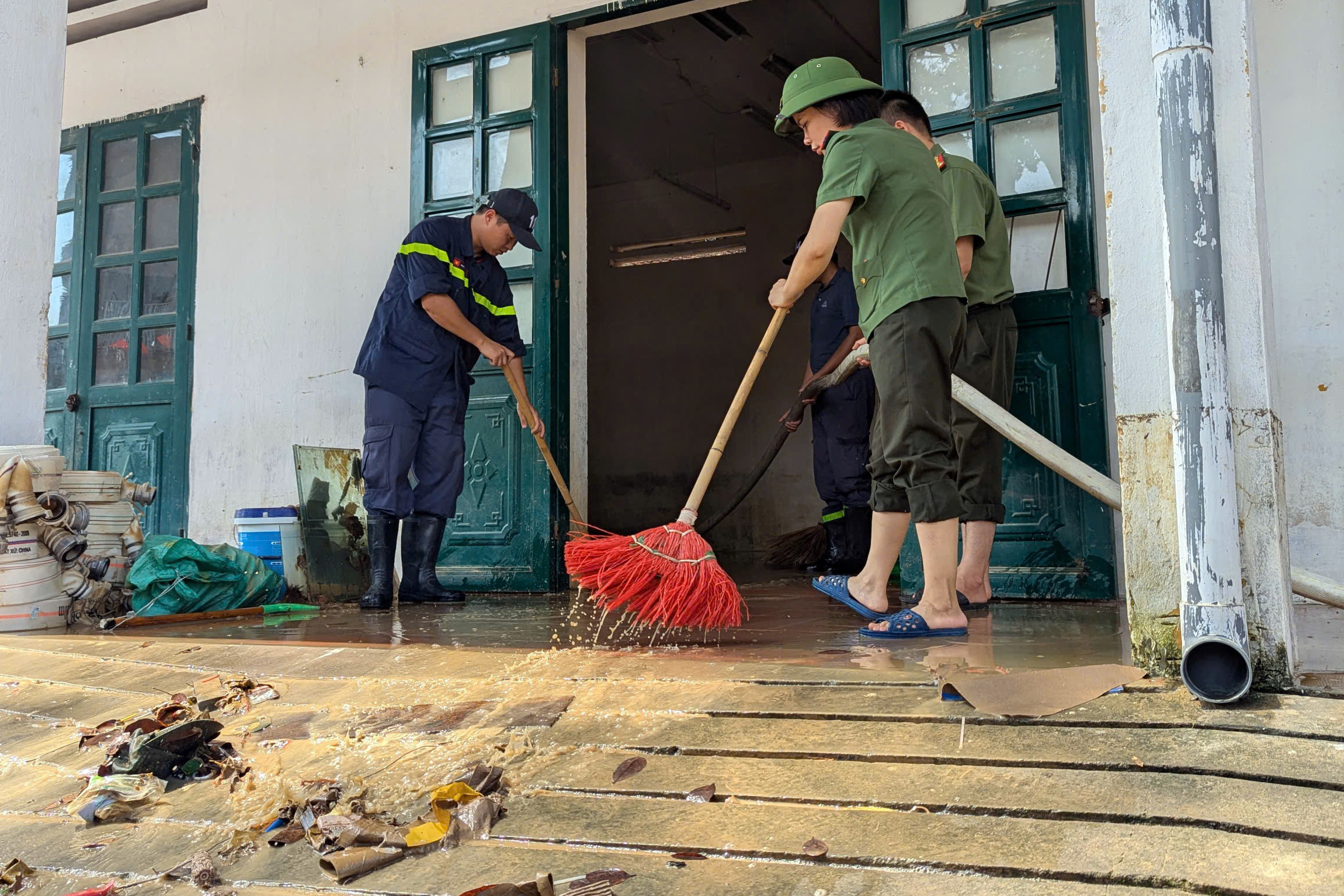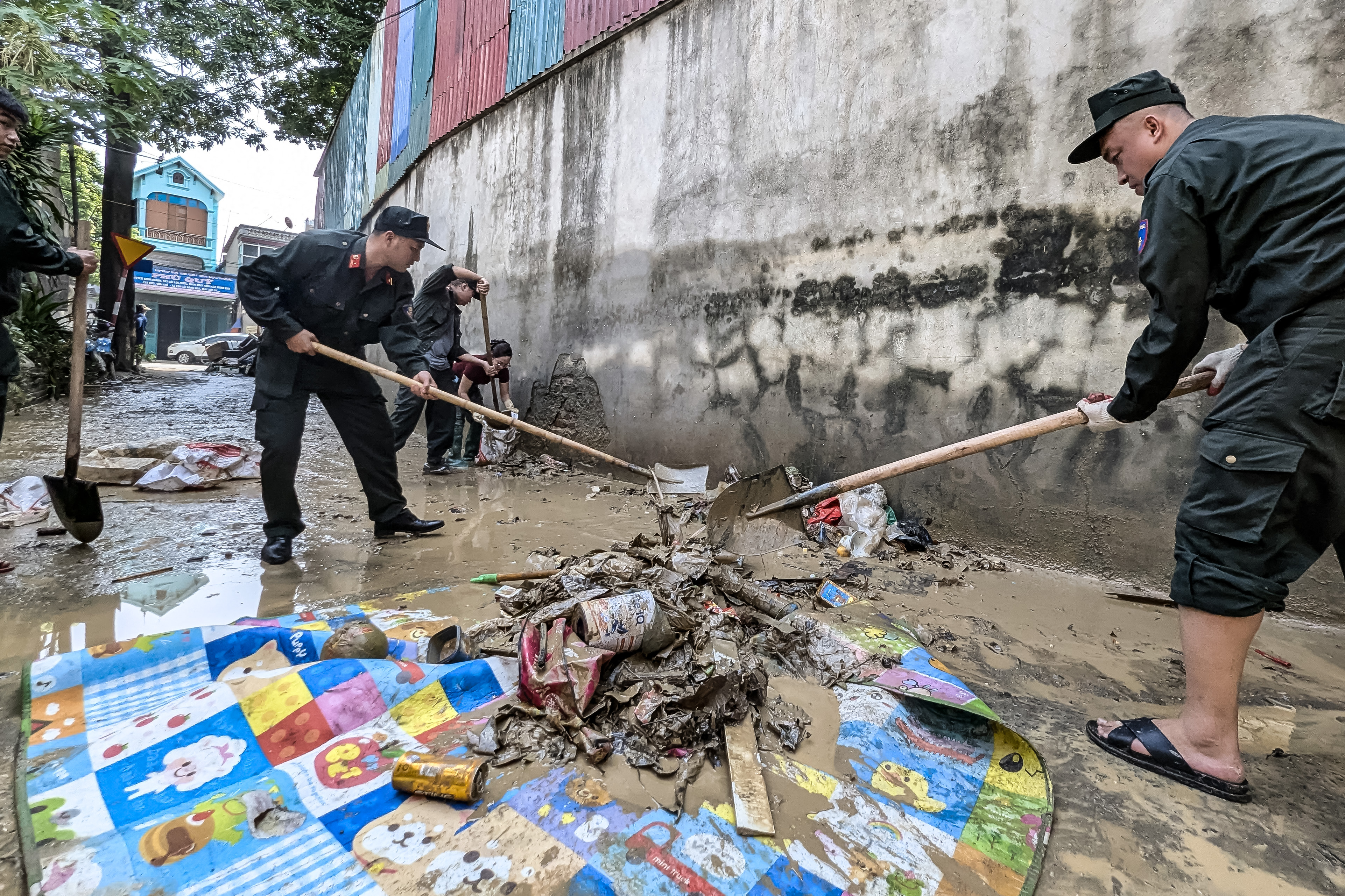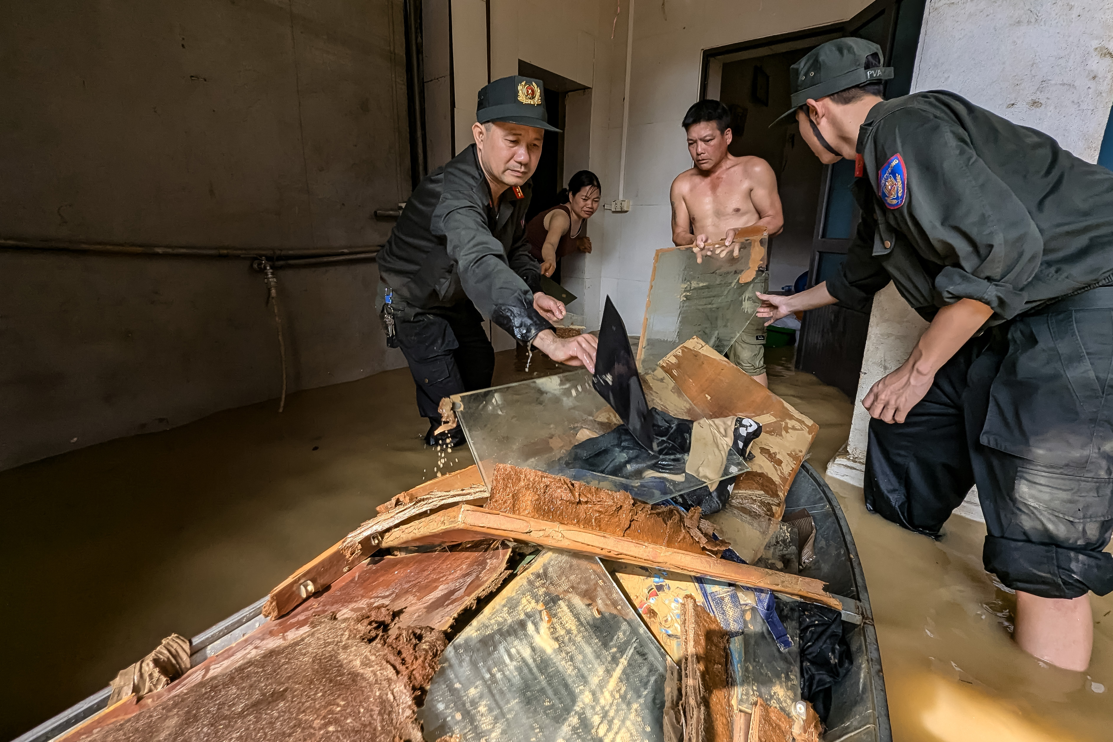 Cán bộ chiến sỹ Công an Thủ đô chung tay cùng người dân khắc phục hậu quả mưa lũ