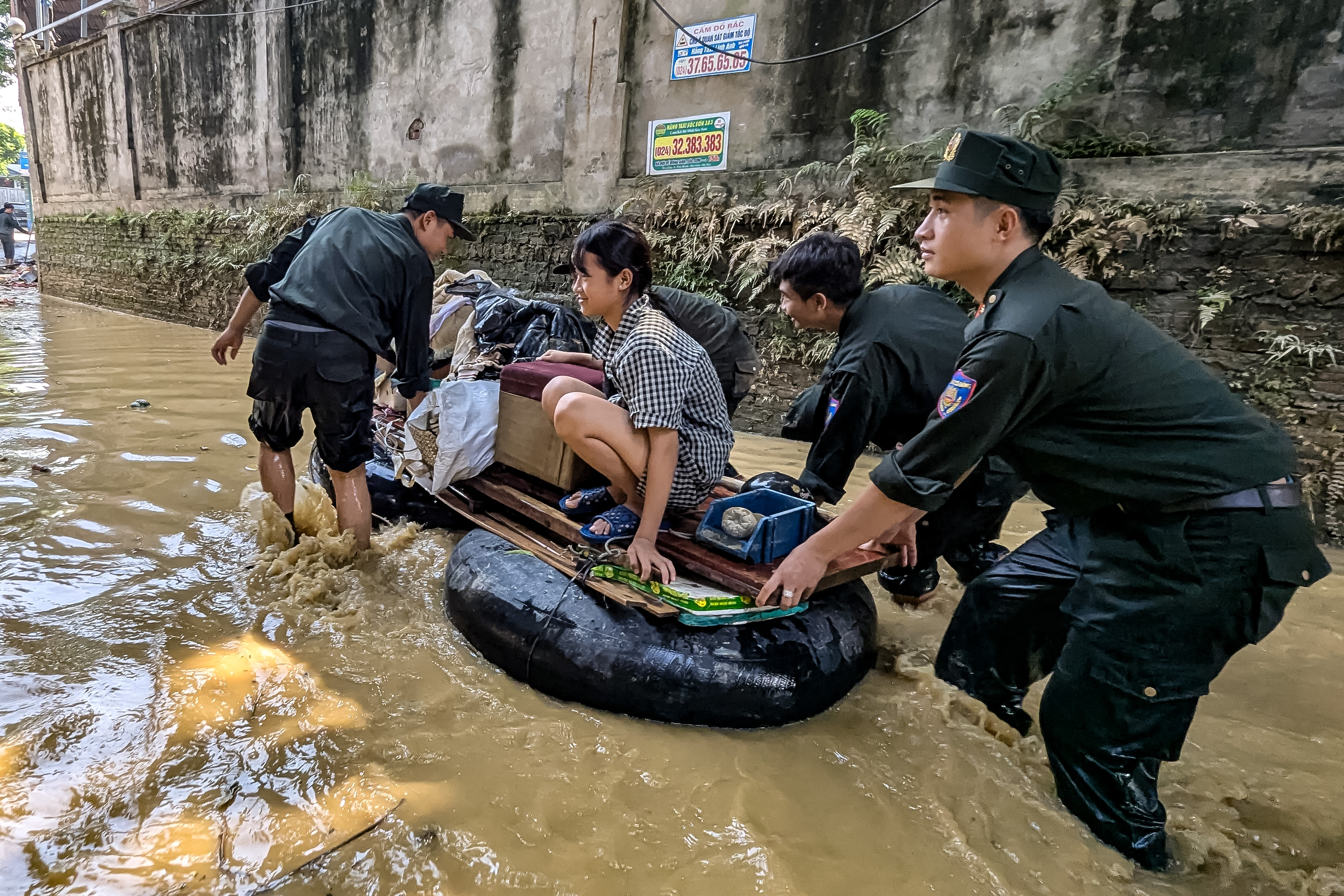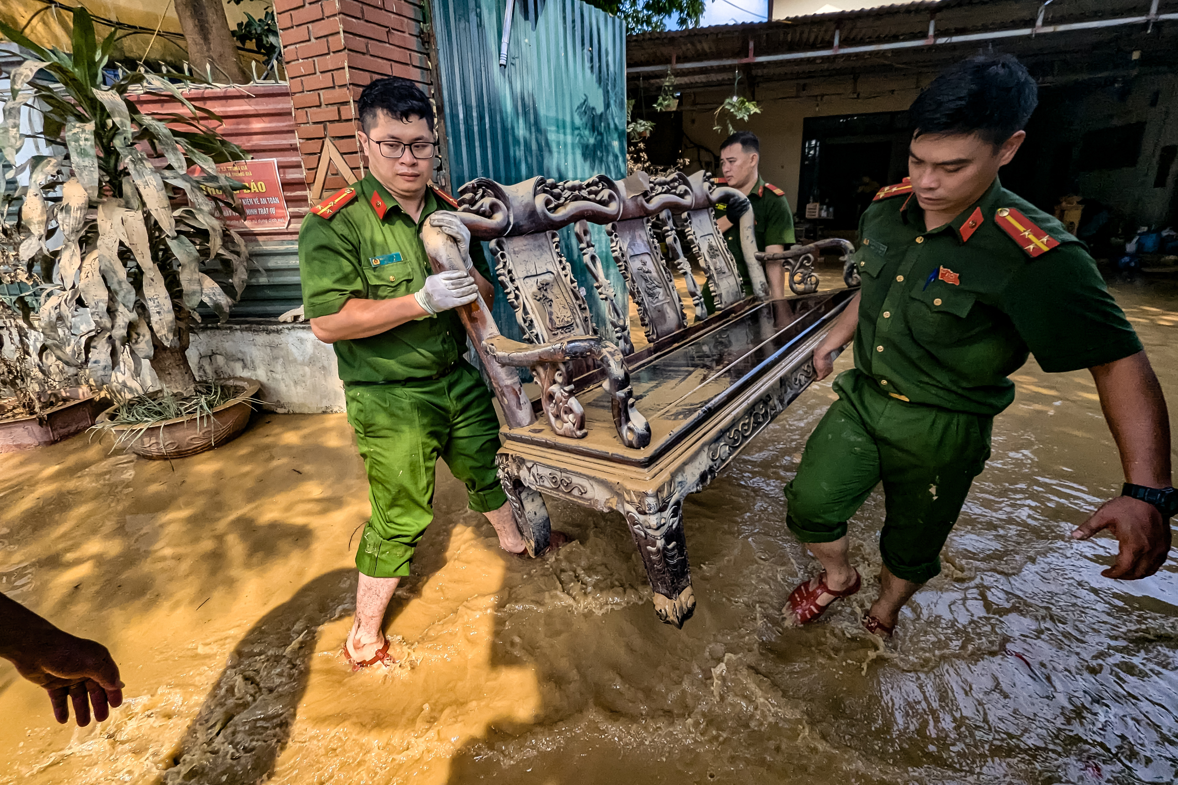 Các lực lượng khác cũng đến từng ngõ, xóm, từng thôn để hỗ trợ người dân vận chuyển đồ đạc