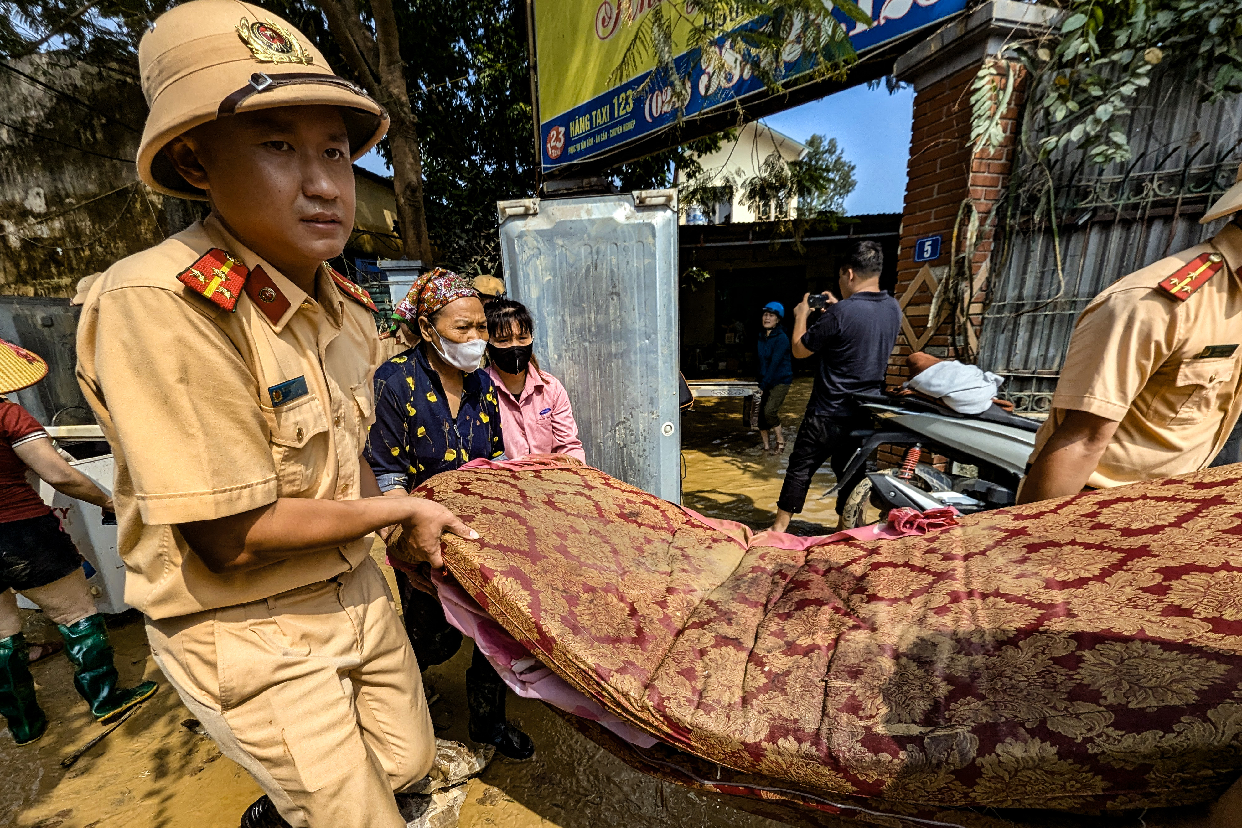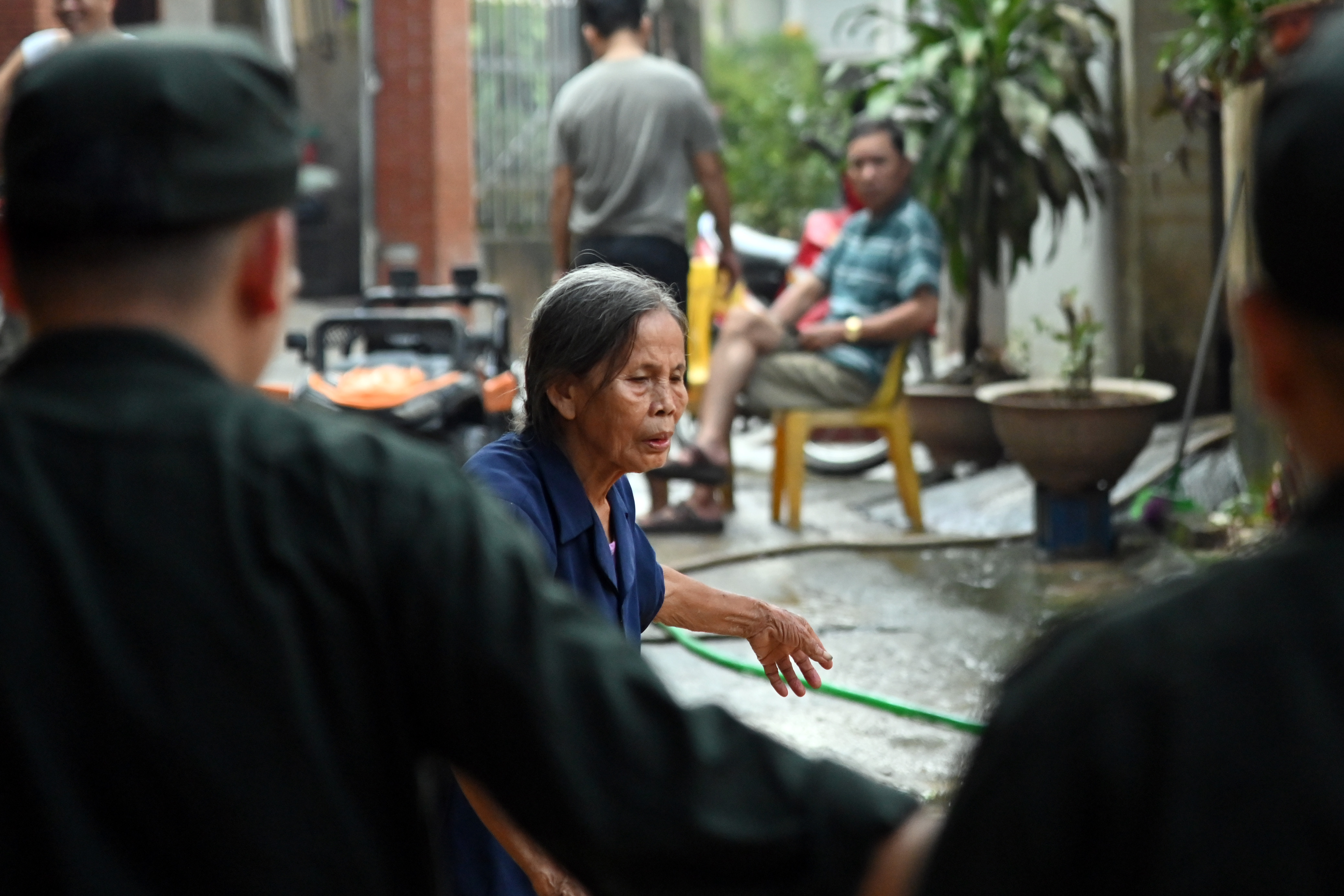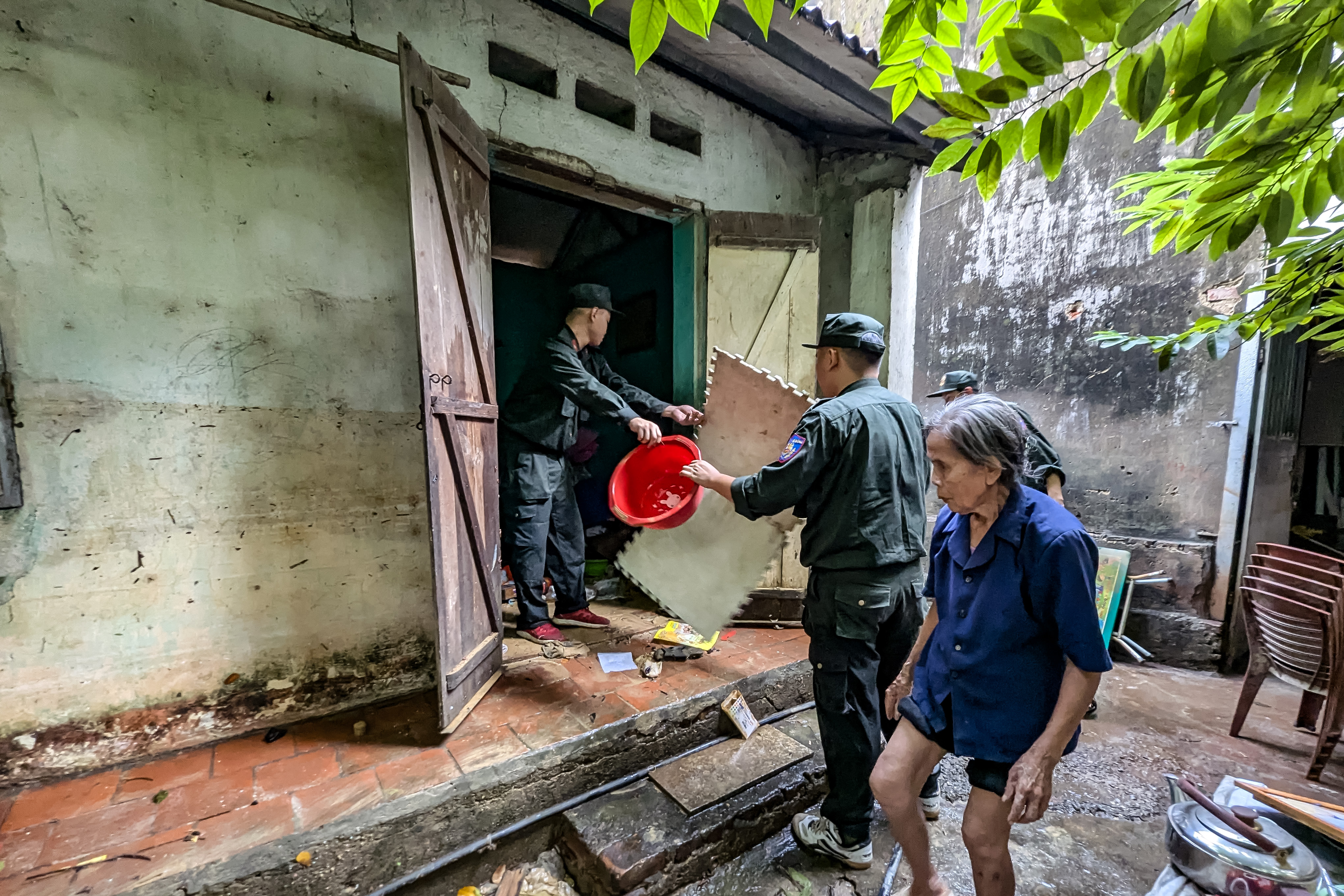 Bà Tuất cho biết, năm nay bà 85 tuổi, rồi mà đây là lần đầu mới thấy nơi mình ở bị ngập sâu, ngập nhanh thế vì nước lũ. Bà cảm ơn lắm với sự giúp đỡ nhiệt tình của các chiến sỹ trẻ thuộc Công an Thủ đô