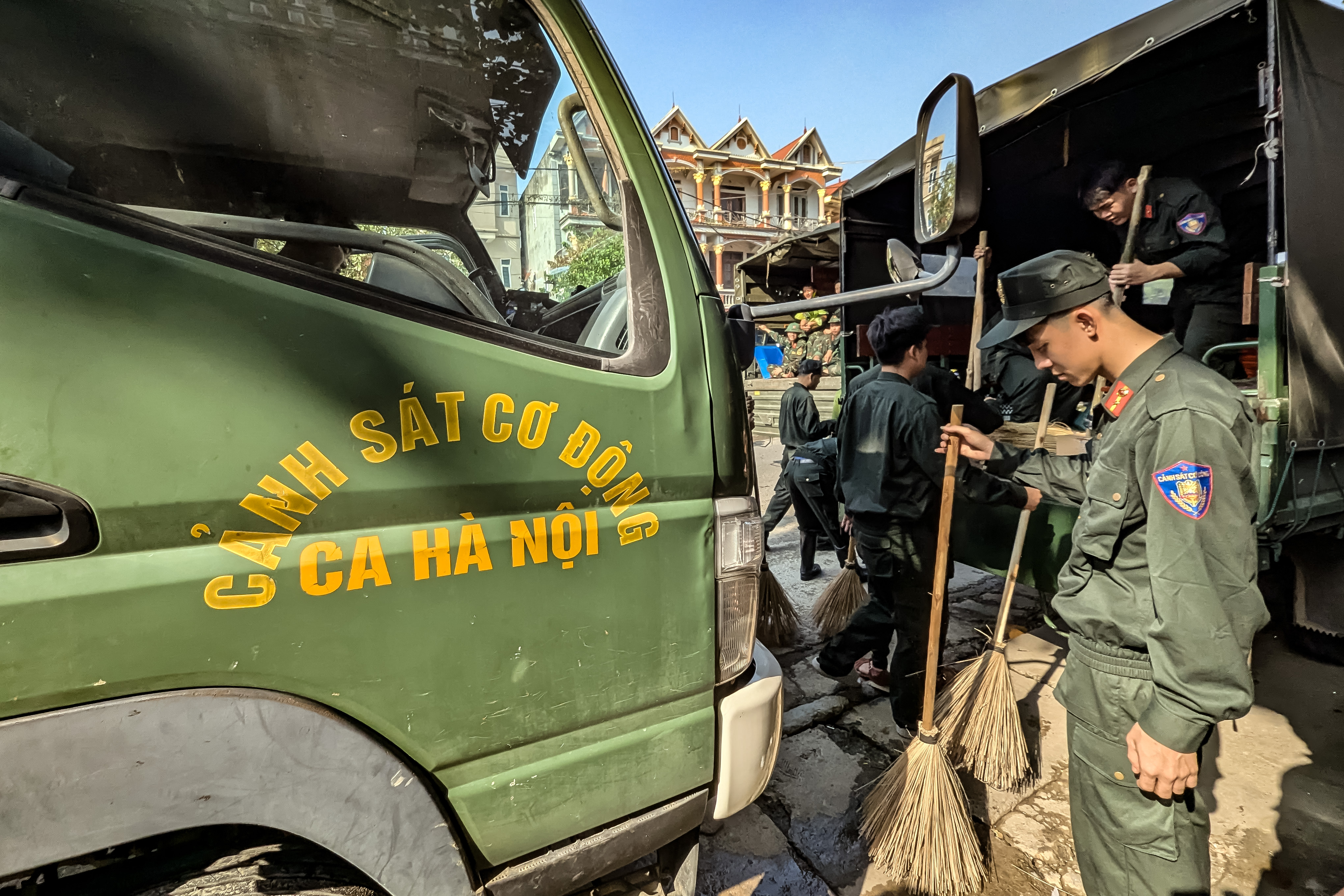 Gần 400 cán bộ chiến sỹ Công an Thủ đô được phân xuống từng thôn, xóm để dọn dẹp môi trường