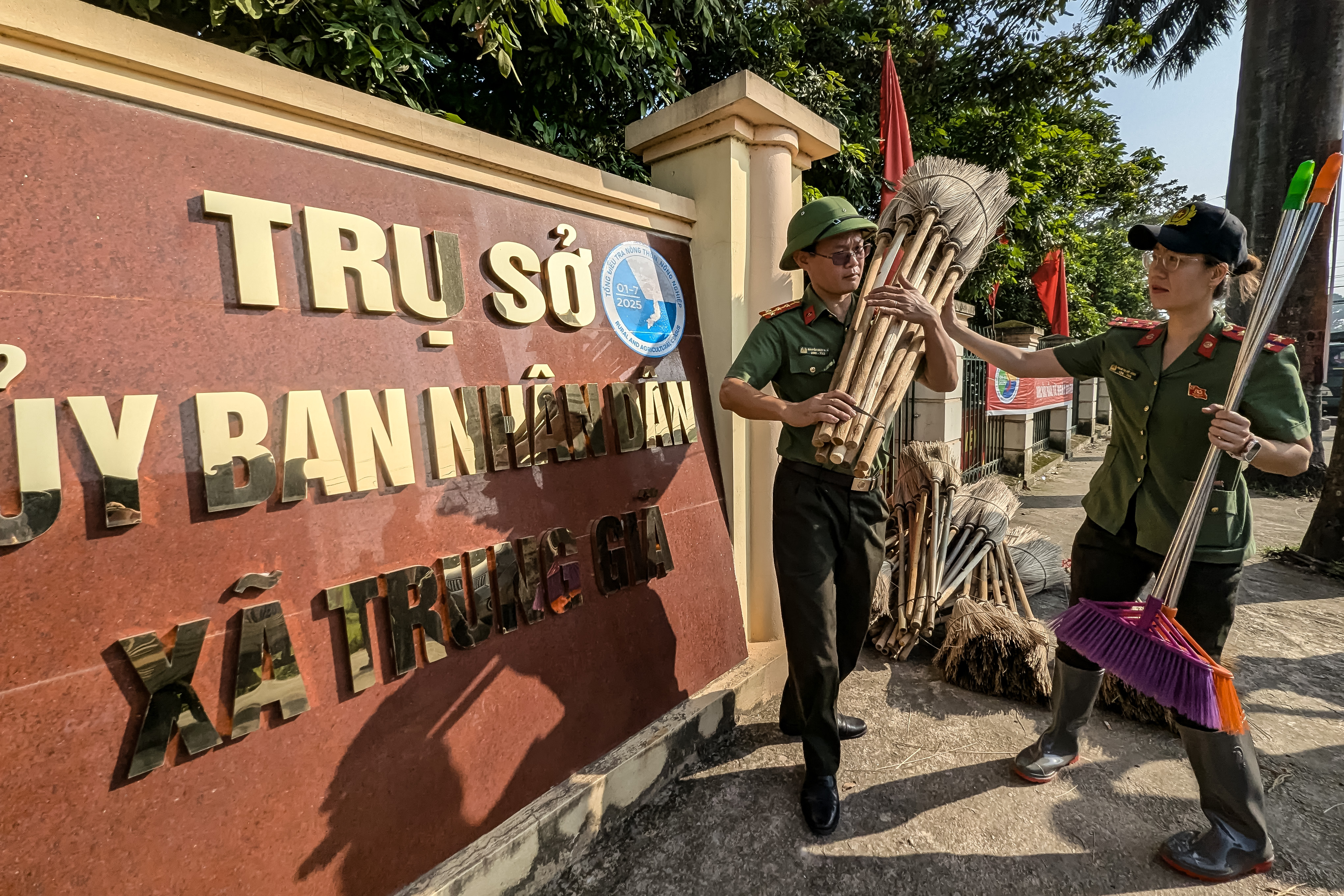 Chuyện giản dị mà xúc động khi hàng trăm cán bộ, chiến sỹ Công an Thủ đô dọn dẹp sau lũ giúp người dân xã Trung Giã