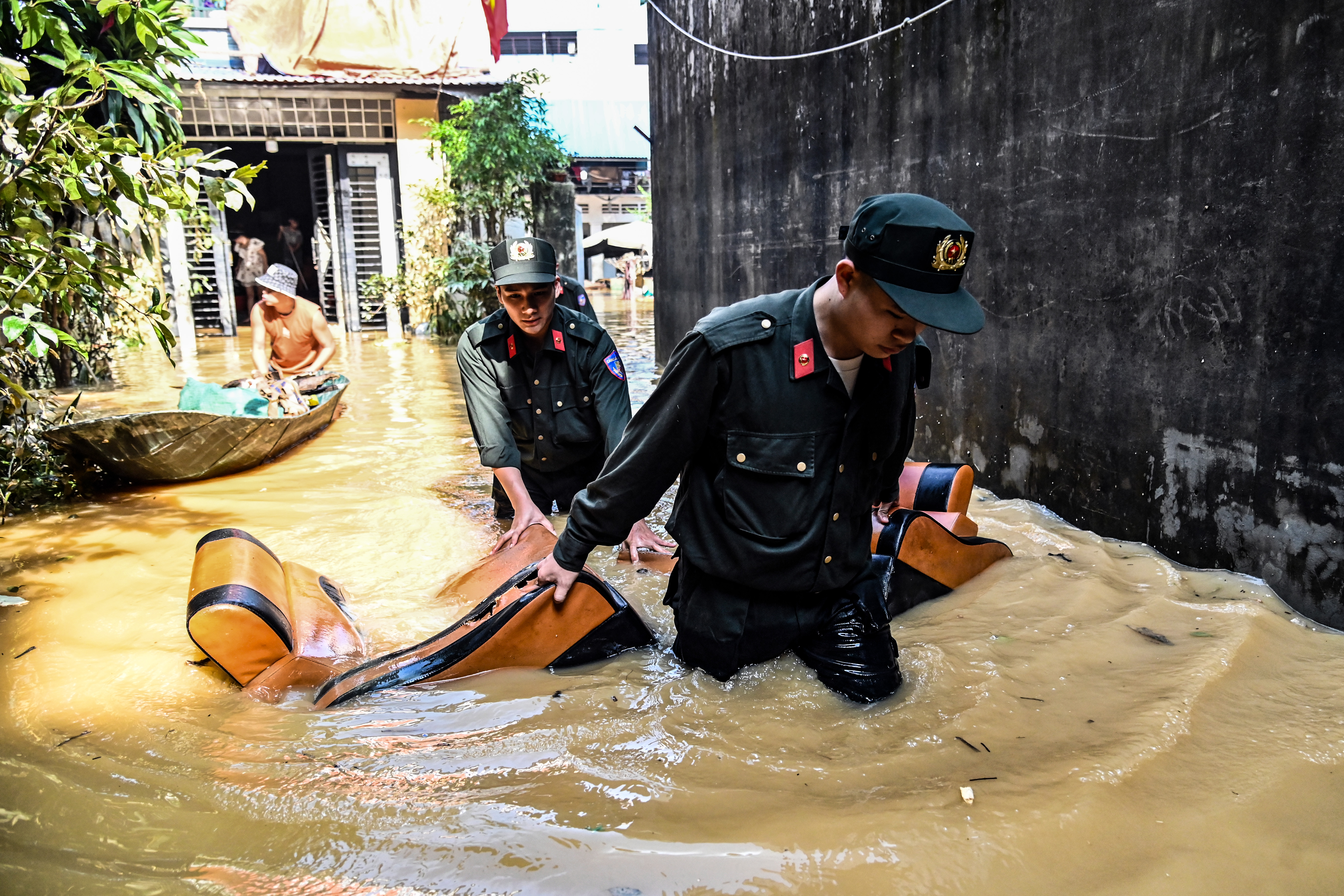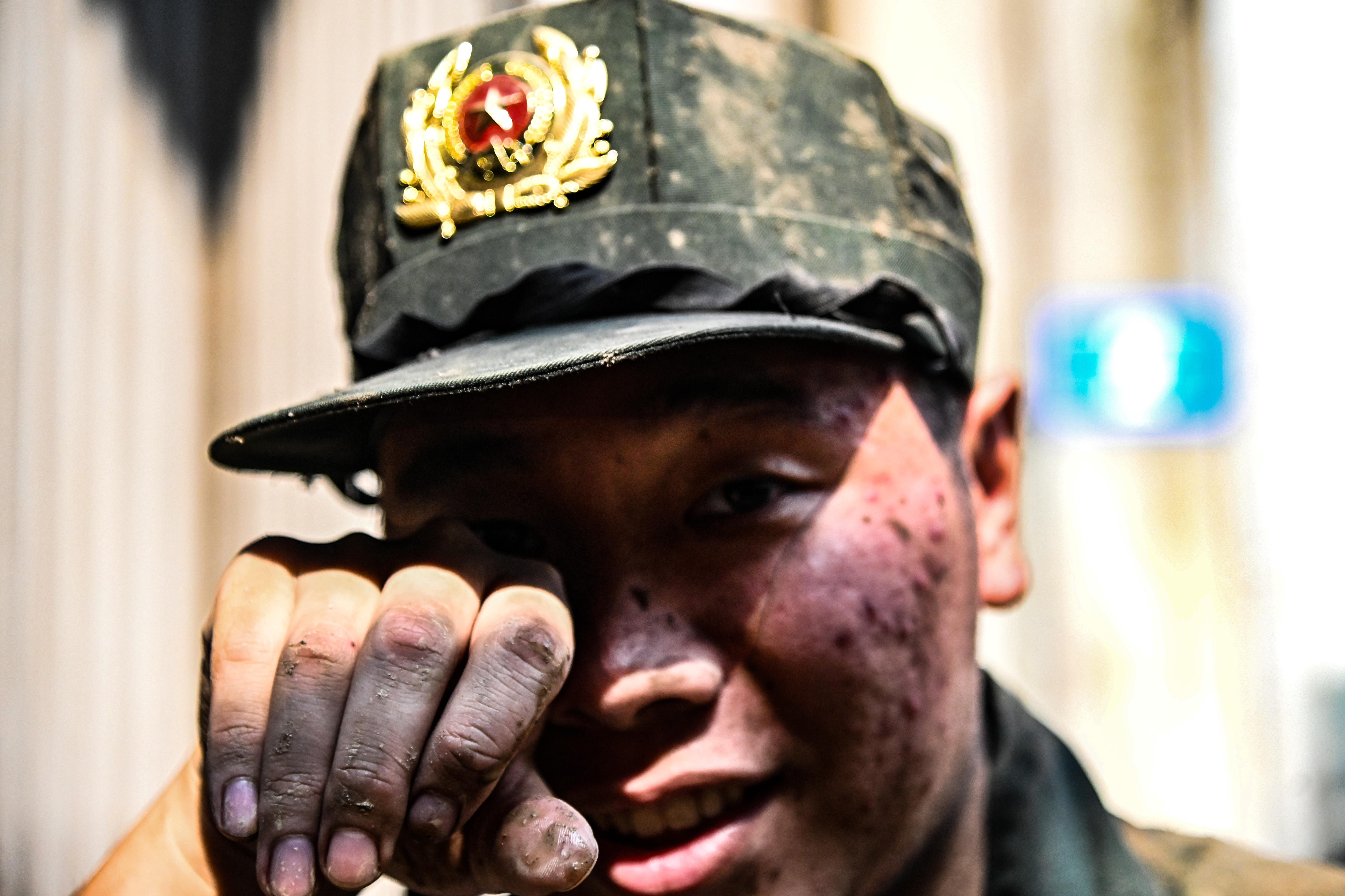 Chân dung chiến sỹ Cảnh sát cơ động sau cả sáng ngâm mình dưới nước giúp dân