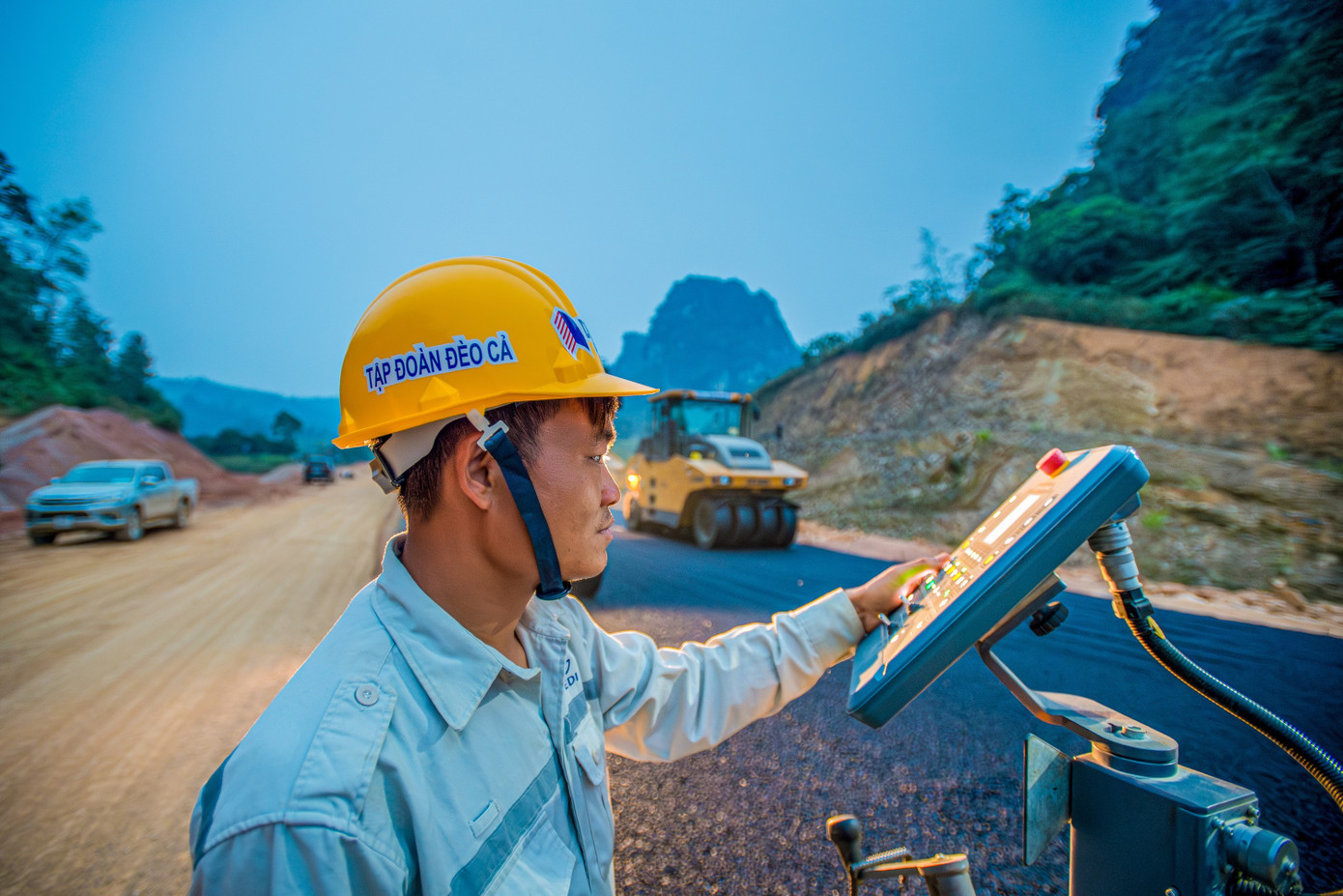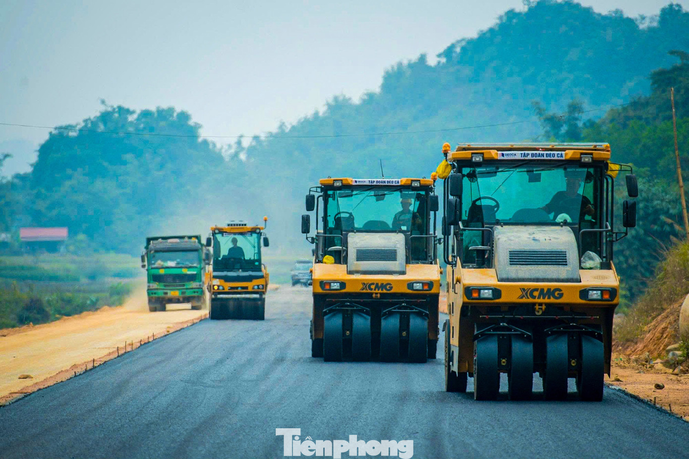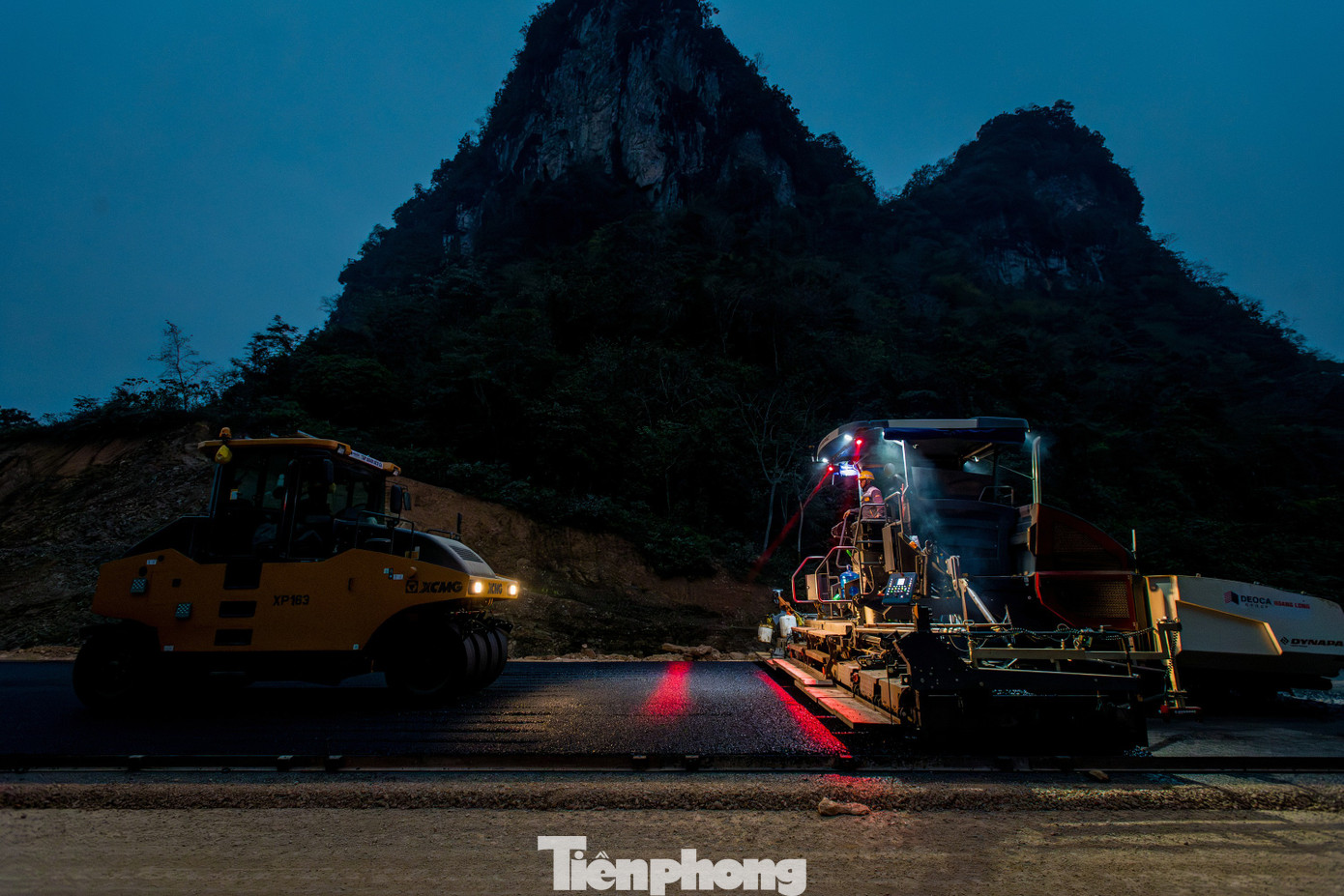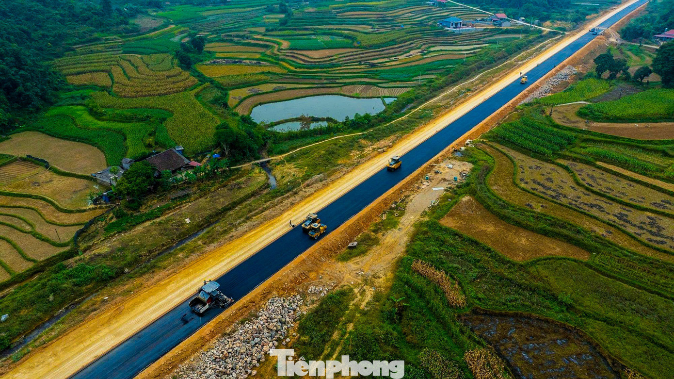 Trong giai đoạn “nước rút”, lực lượng thi công đang khẩn trương trải thảm nhựa. Công nhân và máy móc được chia làm 3 ca và nhiều mũi để sớm hoàn thiện thông xe kỹ thuật vào sáng 19/12.