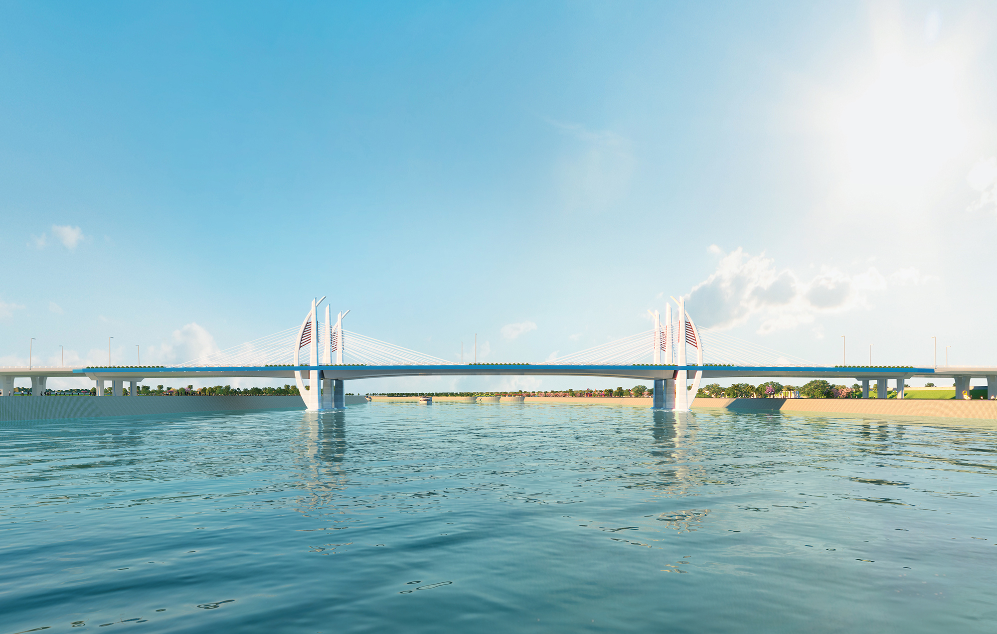 Dự án cầu Hải Thành vượt sông Lạch Tray (Hải Phòng) có mức đầu tư hơn 2.000 tỷ đồng, chiều dài cầu hơn 1km, bề rộng cầu 36m. (Hình ảnh phối cảnh dự án)