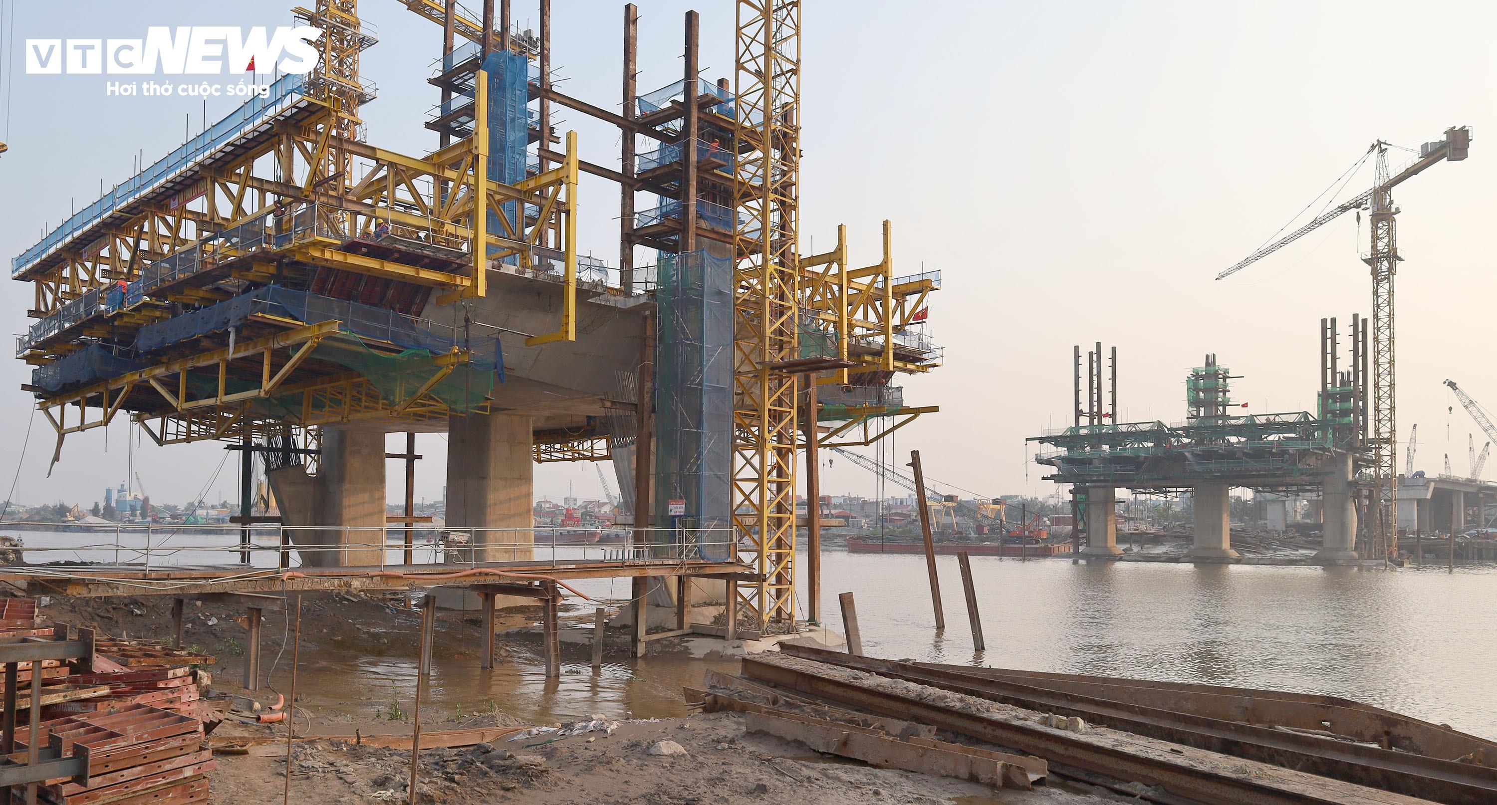 Hai trụ chính của cầu Hải Thành đang trong giai đoạn nước rút thi công.
