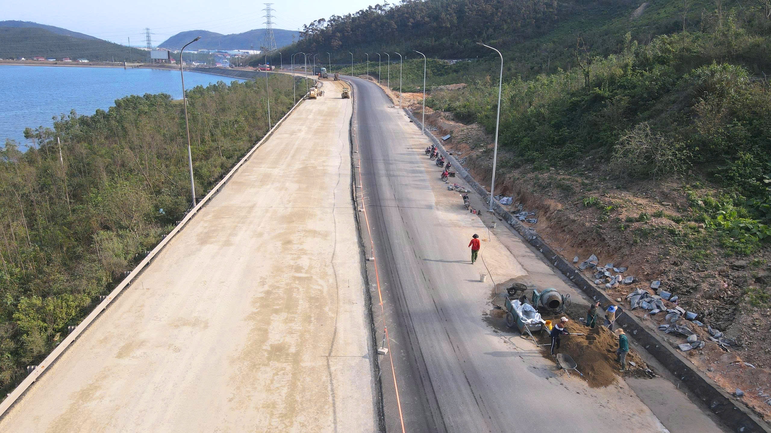 Cầu, đường ở phía cửa hầm đang được gấp rút thi công hoàn thiện