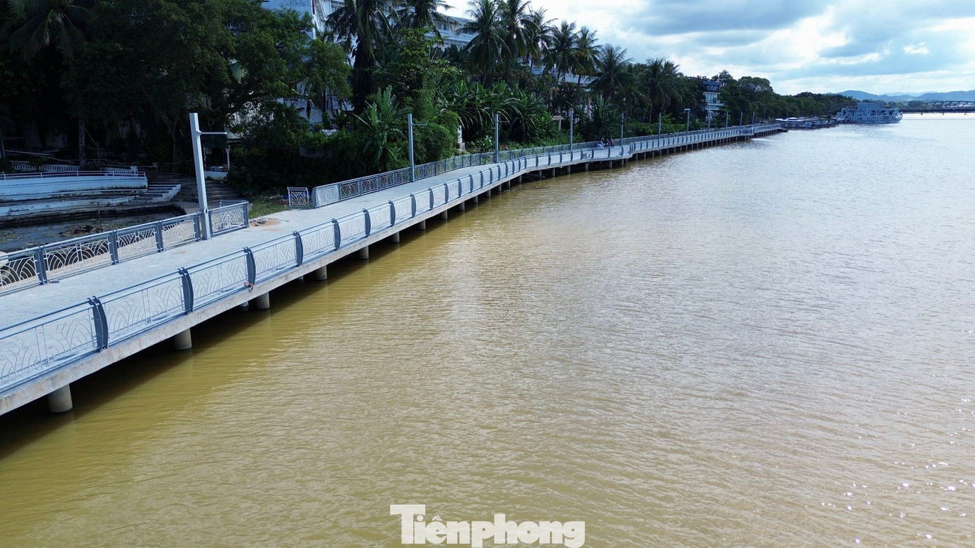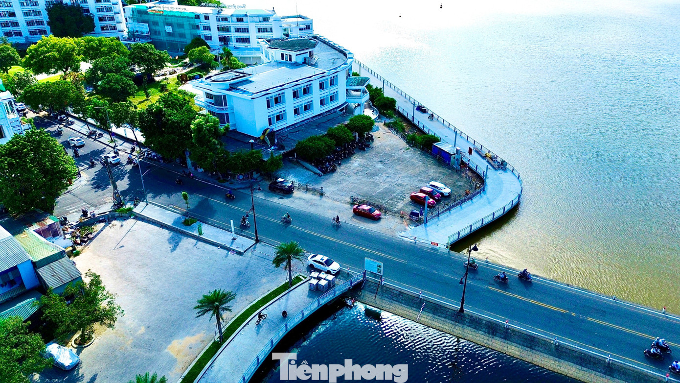 Nhìn từ trên cao, tuyến đường mới uốn lượn mềm mại dọc bờ sông, kết nối hài hòa giữa cảnh quan thiên nhiên nên thơ, tươi đẹp của sông Hương và phố thị sầm uất, hiện đại.