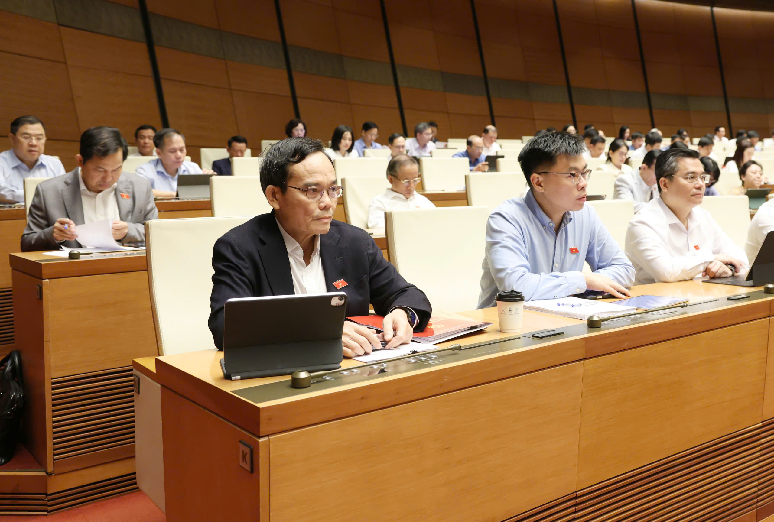 Bí thư Thành ủy TPHCM Trần Lưu Quang cùng các đại biểu Quốc hội dự phiên họp, sáng 20-4. Ảnh: QUANG PHÚC