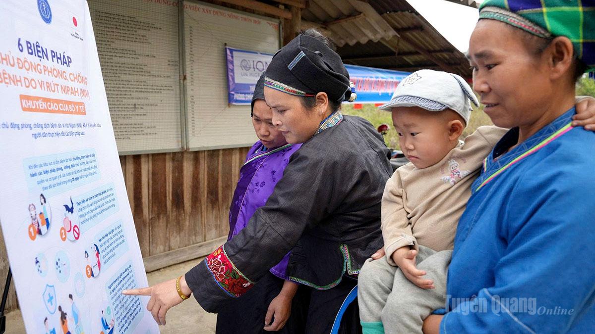 Người dân xã Thàng Tín tìm hiểu về kiến thức phòng chống dịch bệnh.