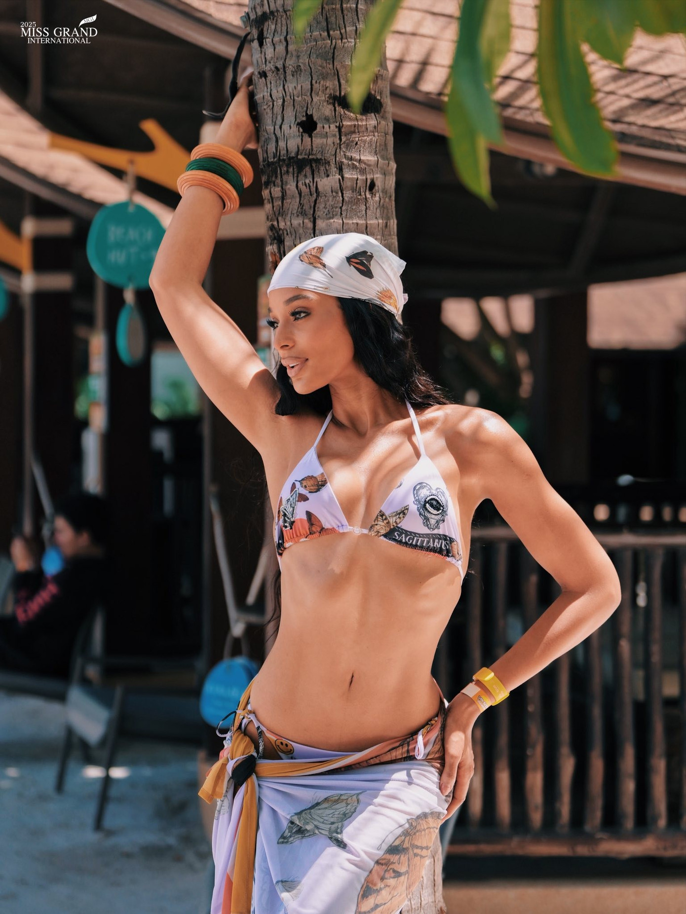 Đây cũng là lần đầu tiên 77 thí sinh khoe dáng với áo tắm sau 10 ngày nhập cuộc ở cuộc thi. Trong buổi sáng 9/10, họ sẽ tham dự phần thi được mong chờ đó là Swimsuit Competition (Áo tắm).