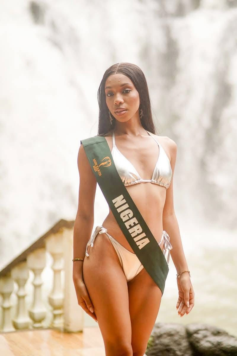 Trang chủ Hoa hậu Trái Đất giới thiệu bộ ảnh áo tắm của dàn thí sinh trước đêm bán kết và chung kết. Bộ ảnh được thực hiện ở thác nước tại Philippines, tôn vinh vẻ đẹp hoang sơ của thiên nhiên bản địa. Đại diện Cuba - Rachel Chang khoe hình thể quyến rũ với bikini tông màu ghi. Cô là ứng viên gây chú ý ở khu vực châu Mỹ. Người đẹp Cuba là luật sư, nhà báo, cổ động viên NFL.