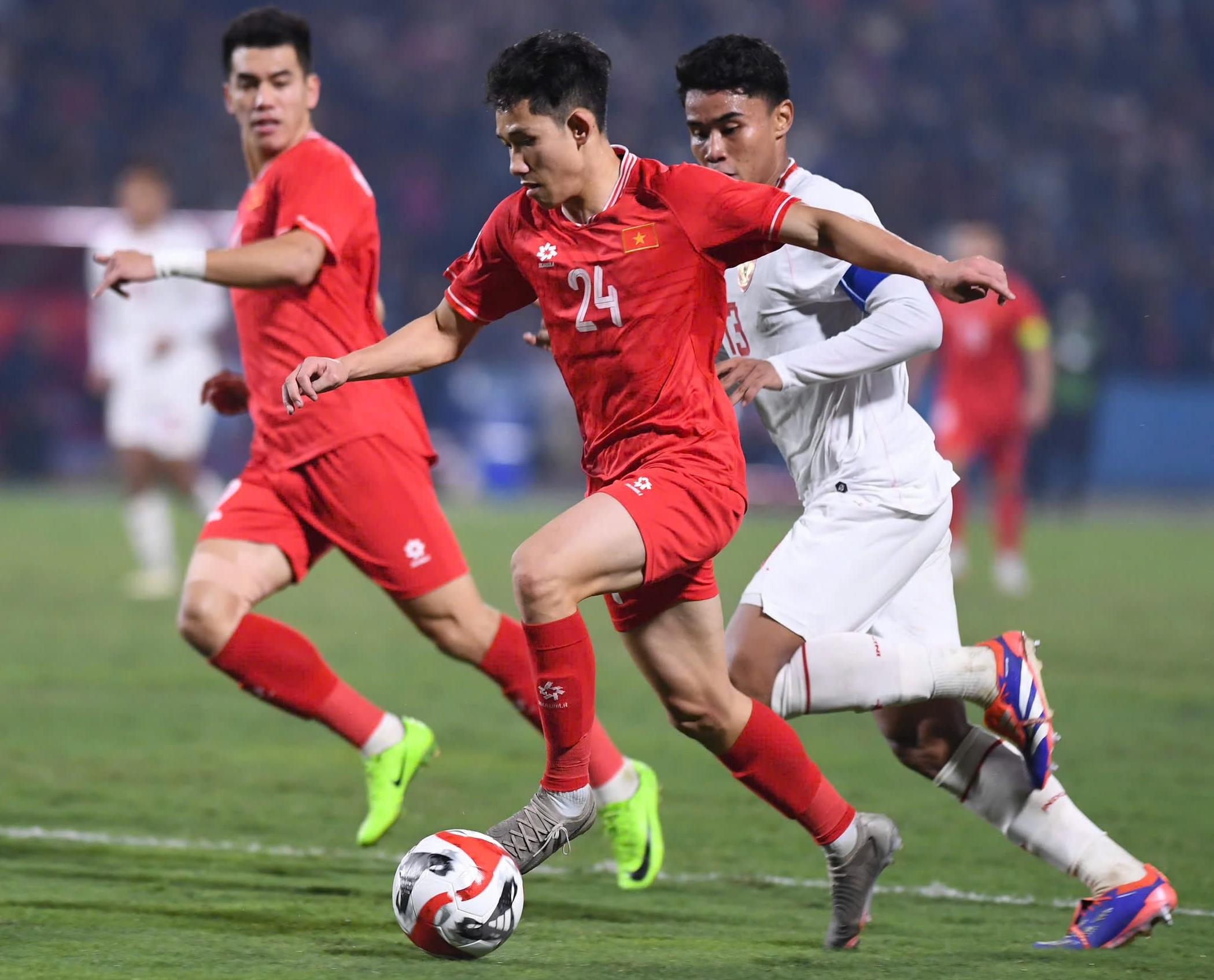 Hai Long (số 24) trong màu áo tuyển Việt Nam (Ảnh: Thành Đồng).