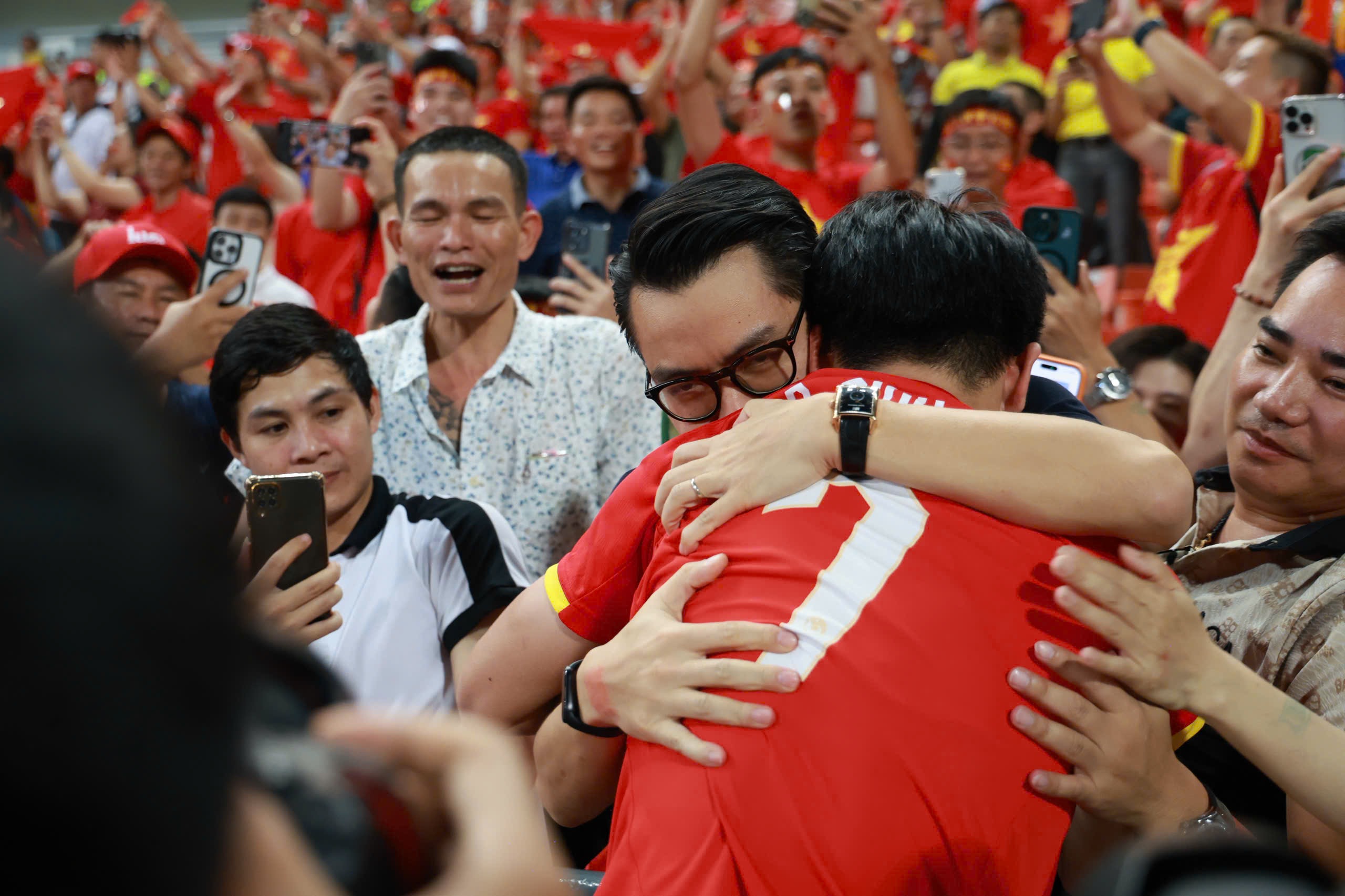 Đình Bắc ăn mừng cùng người hâm mộ. ẢNH: DŨNG PHƯƠNG
