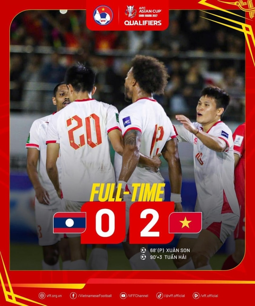 Với chiến thắng này, ĐT Việt Nam củng cố vị trí nhì bảng F tại vòng loại Asian Cup 2027, kém đội đầu bảng Malaysia 3 điểm. Trong khi đó, ĐT Lào dù chưa có điểm nhưng đã thu về những bài học kinh nghiệm quý giá cho các trận đấu sắp tới.