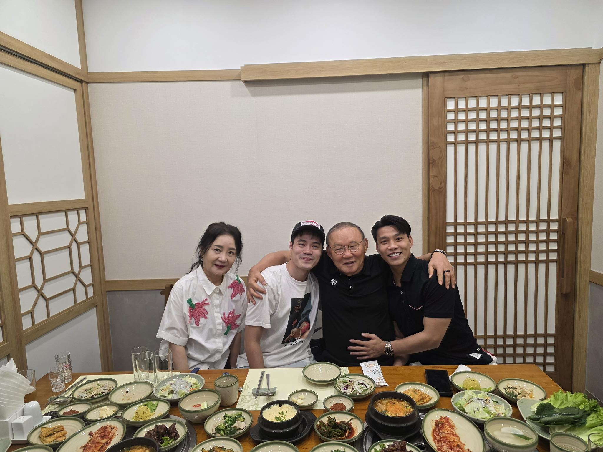 “Lâu rồi mới có dịp tái ngộ, thật vui khi được trò chuyện với Nguyễn Văn Toàn và Vũ Văn Thanh”, chiến lược gia người Hàn Quốc chia sẻ. Theo đó, vợ chồng HLV Park Hang-seo dùng bữa trưa thân mật cùng hai học trò, vừa hỏi thăm quá trình hồi phục, động viên họ giữ tinh thần lạc quan.