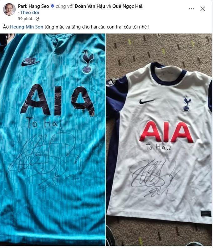Trên trang cá nhân, món quà đặc biệt là chiếc áo đấu Tottenham, đội bóng Son Heung-min từng làm thủ quân. Đây không chỉ là vật phẩm thể thao đơn thuần mà còn mang giá trị tinh thần lớn, thể hiện sự kết nối giữa 2 nền bóng đá Hàn Quốc và Việt Nam.