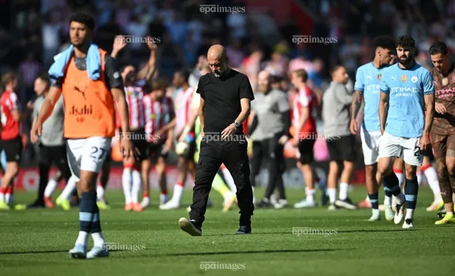 Pep thừa nhận đã hành xử không đúng với người quay phim sau trận thua của Man City. Ảnh: EPA.