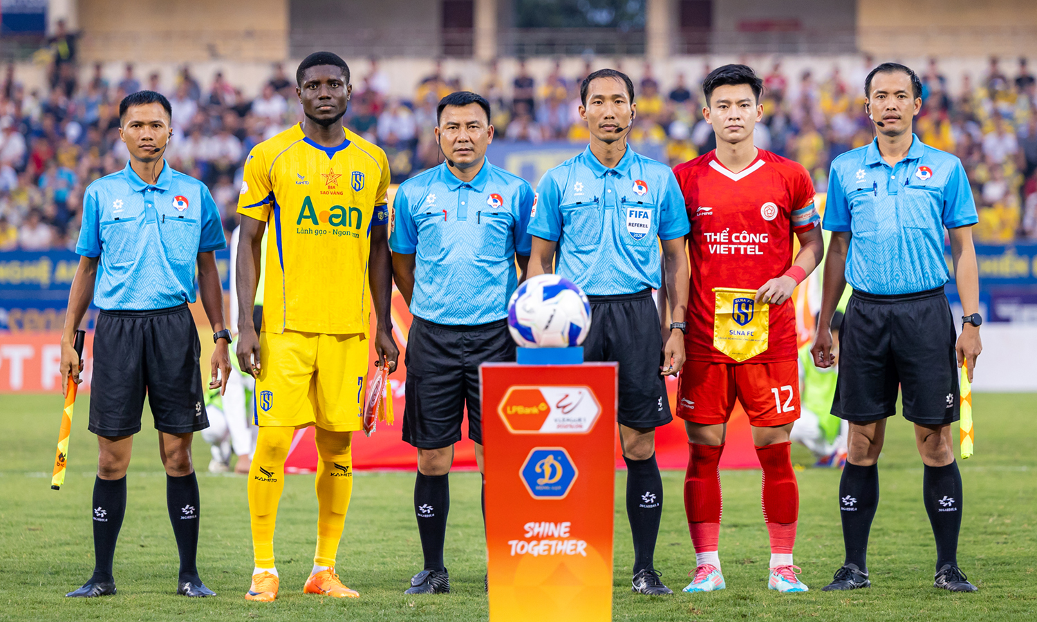 Trọng tài gây tranh cãi trong trận đấu giữa Sông Lam Nghệ An và Thể Công Viettel.