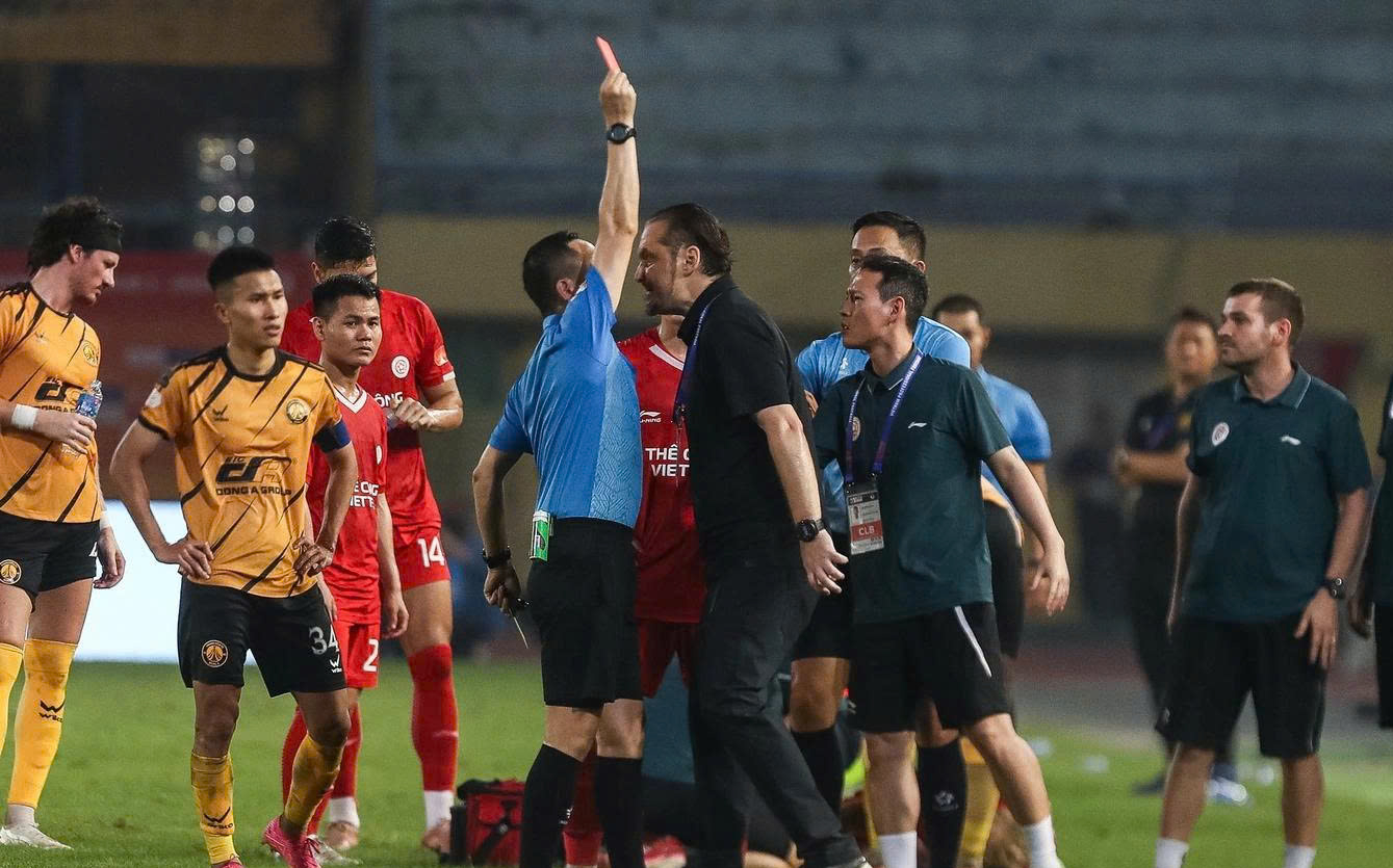 HLV Popov nhận thẻ đỏ trong trận đấu với Thanh Hóa tại vòng 18 V-League 2025-2026.