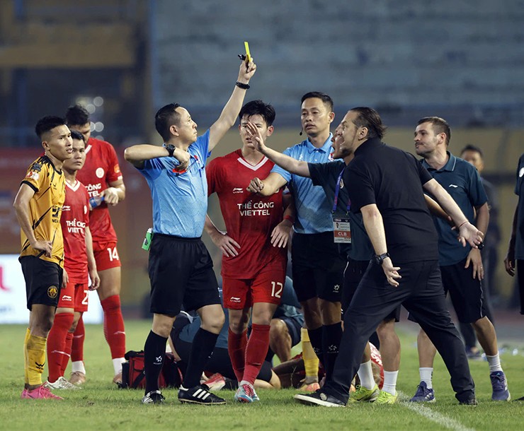 HLV trưởng Thể Công Viettel ném thẻ làm nhiệm vụ.