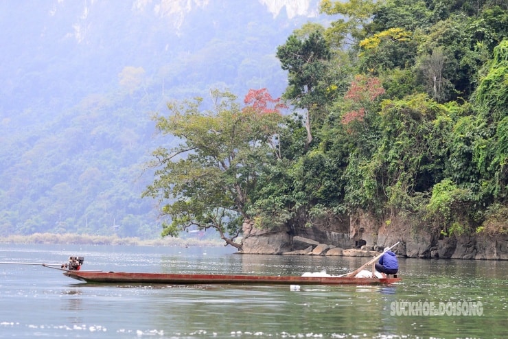 Trải nghiệm đáng giá nhất tại Ba Bể mùa này là xuôi thuyền trên mặt hồ phẳng lặng. Làn sương mỏng giăng mắc trên mặt nước, không gian yên tĩnh chỉ còn lại tiếng mái chèo khua nhẹ, tất cả tạo nên một khung cảnh mùa đông yên bình hiếm có.