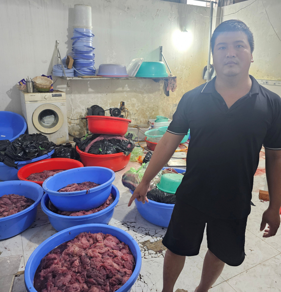 Khai nhận với cơ quan Công an, chủ cơ sở Lê Quang Quyết cho biết cơ sở hoạt động từ tháng 2/2025 đến nay. Quyết thuê 7 nhân viên làm các công việc từ nhập nguyên liệu đến sơ chế, đóng gói, giao thịt thành phẩm cho khách hàng. Cơ sở hoạt động không có giấy phép đăng ký kinh doanh, không khai báo thuế, không đóng thuế, không ký hợp đồng lao động với các nhân viên.